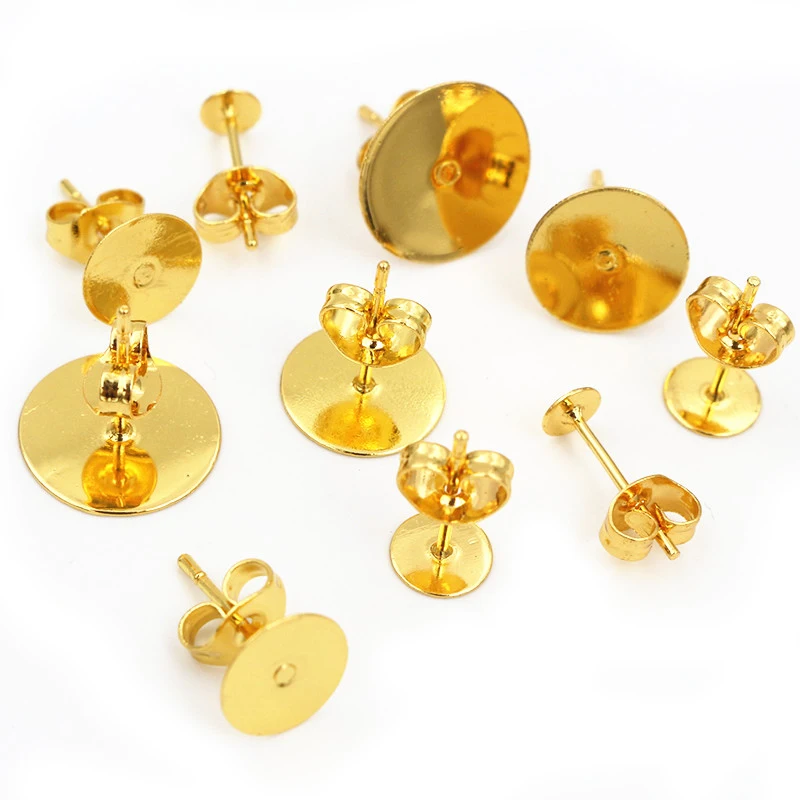 50-100 шт. Лот, золотые серьги из нержавеющей стали, шпильки для пустых столбов, с выводами для серег, задняя часть ушей для изготовления ювелирных изделий своими руками
