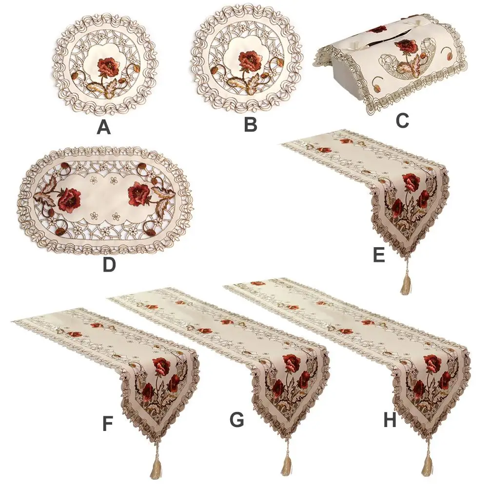 Особенности:1. Стиль: европейский и американский классический стиль, пасторальная вышивка элегантная и достойная.2. Приемная полиэфирная ткань удобна и легко моется и сохнет3. Он может украсить и защитить мебель и обеденный стол, чтобы продлить срок их службы.4. Он может придать благородство и элегантность столу.5. В связи с использованием разных выполнялись мануально, замеры сделаны вручную, поэтому возможны отклонения на 1-3 см/0,39-1,18 дюймов ошибки.Параметры:1. Размер: (прибл.)1) Диаметр: 20 см/7,87 дюйма, 30 см/11,81 дюйма2) крышка коробки для салфеток: 30*45 см/11,81*17,72 дюймов3) эллипс: 40*150 см/15,75*59,06 дюйма, 40*175 см/15,75*68,90 дюйма, 40*200 см/15,75*78,74 дюйма, 40*250 см/15,75*98,43 дюймов2. Материал: полиэфирное волокно3. Применение: для столовых приборов, столов, дома, гостиных, ресторанов и т. д.Упаковочный лист: