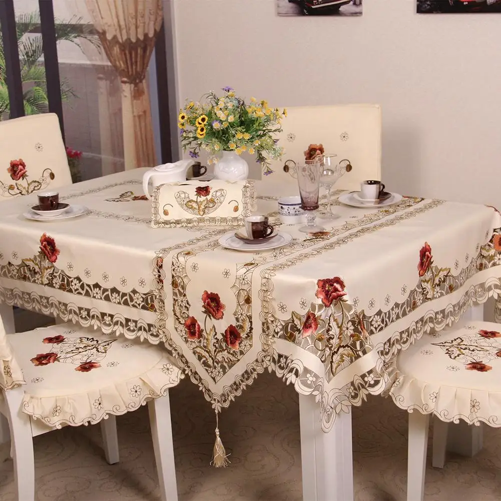 Роскошная Европейская скатерть кремового цвета с вышивкой, чехол дл...