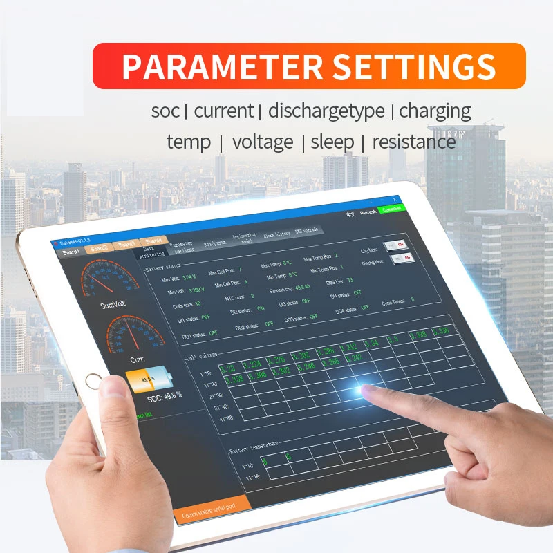 Бесплатные детали, как показано ниже 1) модуль Bluetooth 2) кабель USB к UART 3) кабель USB к RS485 (только для модуля RS485 /CAN) 4) датчик температуры требует дополнительной покупки 1) сенсорный ЖК-экран 2) индикатор заряда батареи