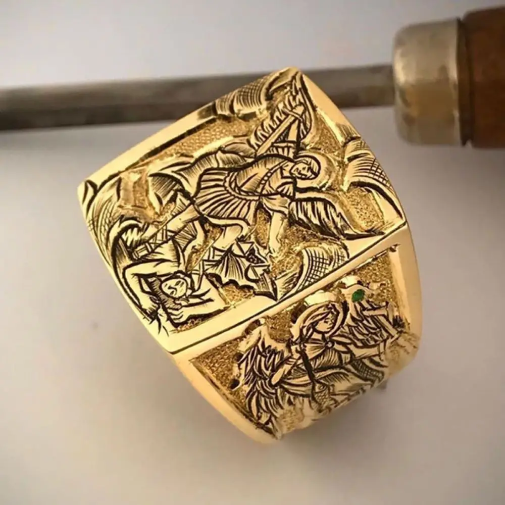 кольцо женское парные кольца атака титанов самооборона Мужское Велосипедное кольцо золотистого цвета, кольцо из цинкового сплава Knigts Templar, ювелирное украшение ангела-хранителя на Хэллоуин, рождественский подарок