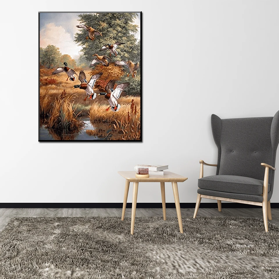 DIY алмазная живопись летающих уток, вышитая бисером рукоделие дома...