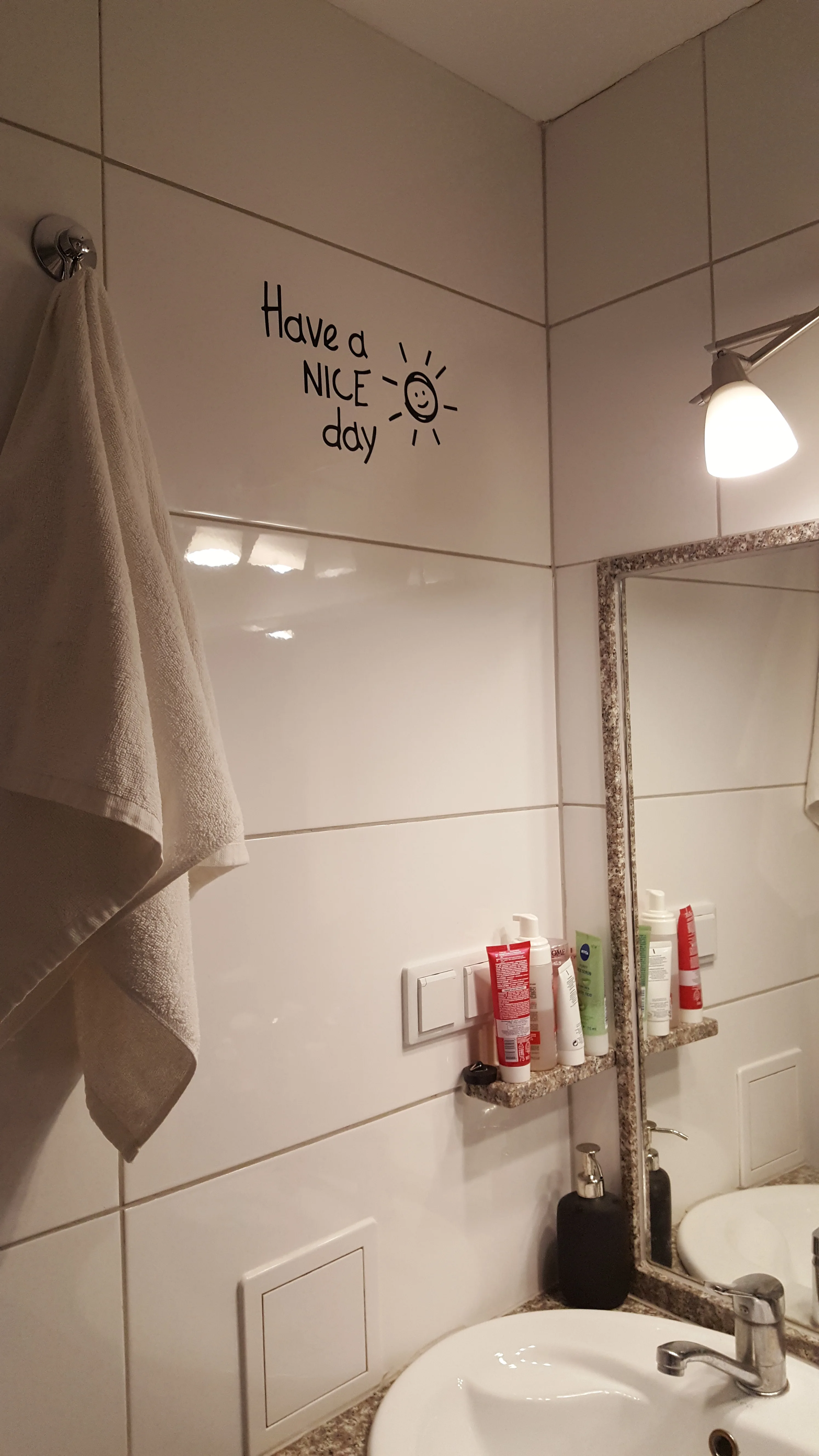 1. ОВаше изображение может не отражать реальный размер. Это цифровой пример для демонстрации цели. Чтобы наклейка соответствовала вашему пространству 100%, вы должны измерить свое пространство.