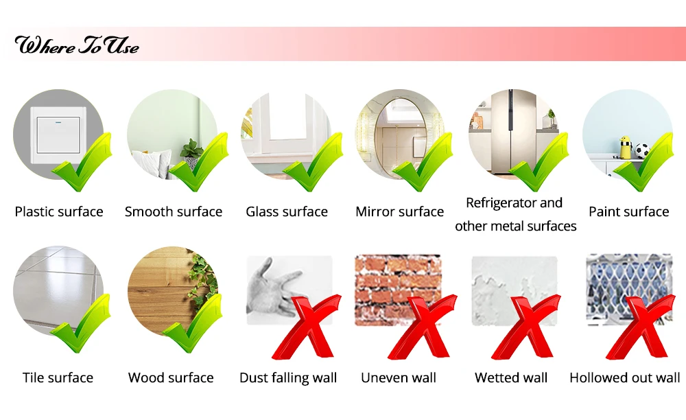 1. Убедитесь, что поверхность, которую нужно прикрепить, является гладкой поверхностью и что есть конвекции, сотканы и морщины. Не прилипайте.