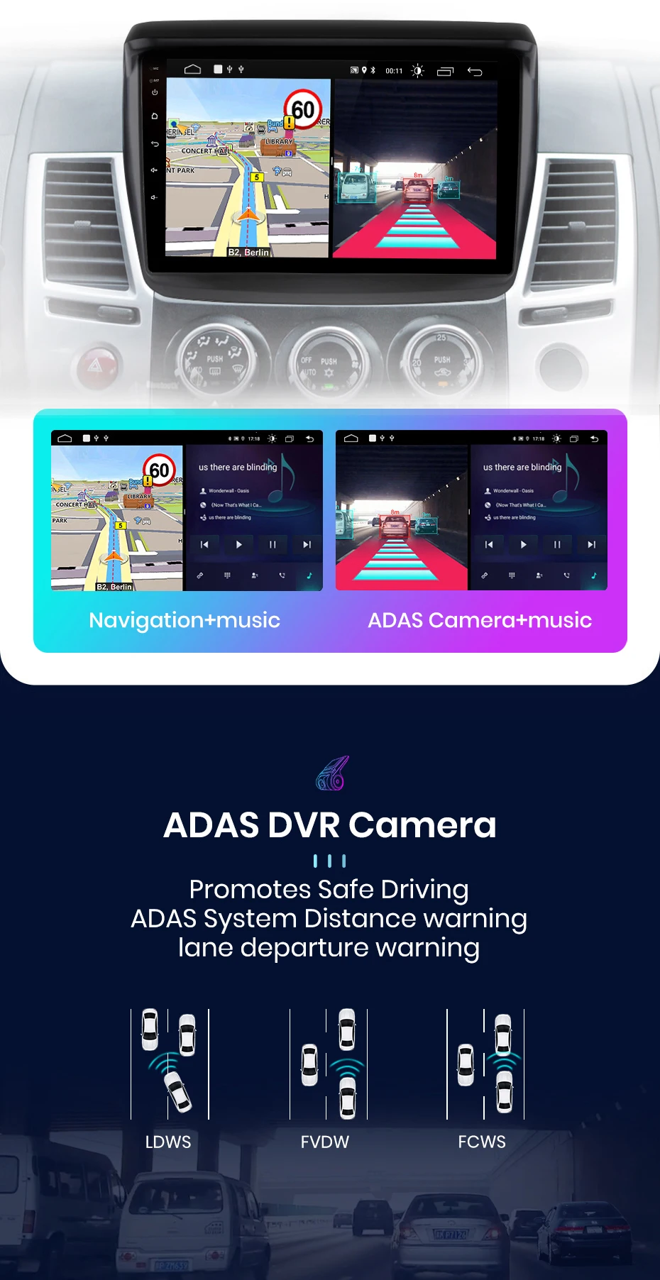 Вы можете использовать навигацию и другие приложения одновременно, такие как прослушивание музыки или включение функций ADAS и т. Д.