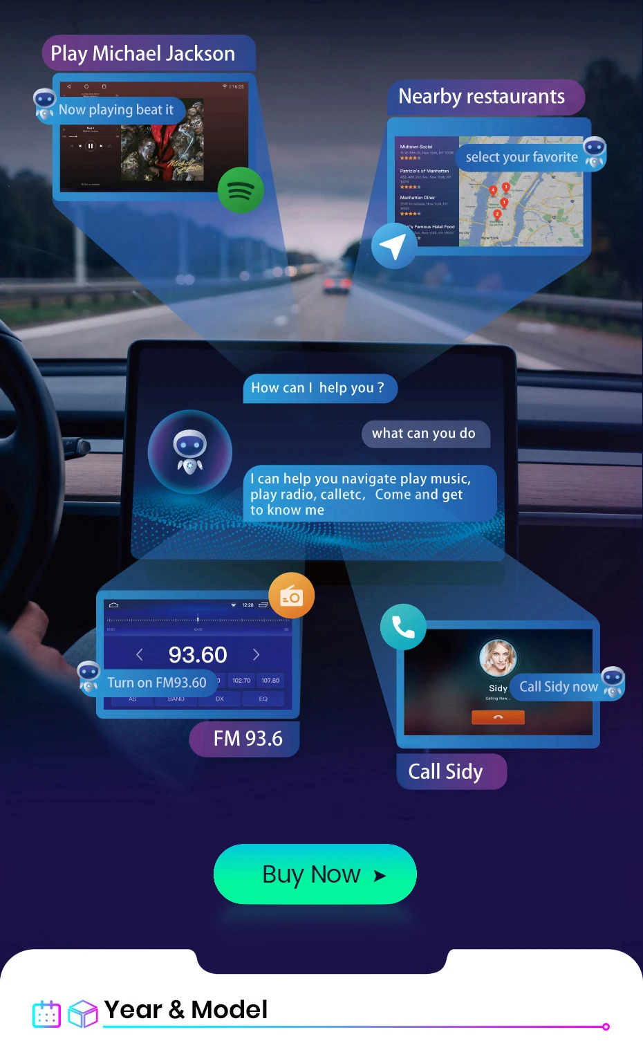 Просто скажите, что командное слово и «Топ» сделают вашу работу, например, откройте навигацию, откройте музыку, Воспроизведите видео .... Сделайте ваш диск более легким и безопасным.