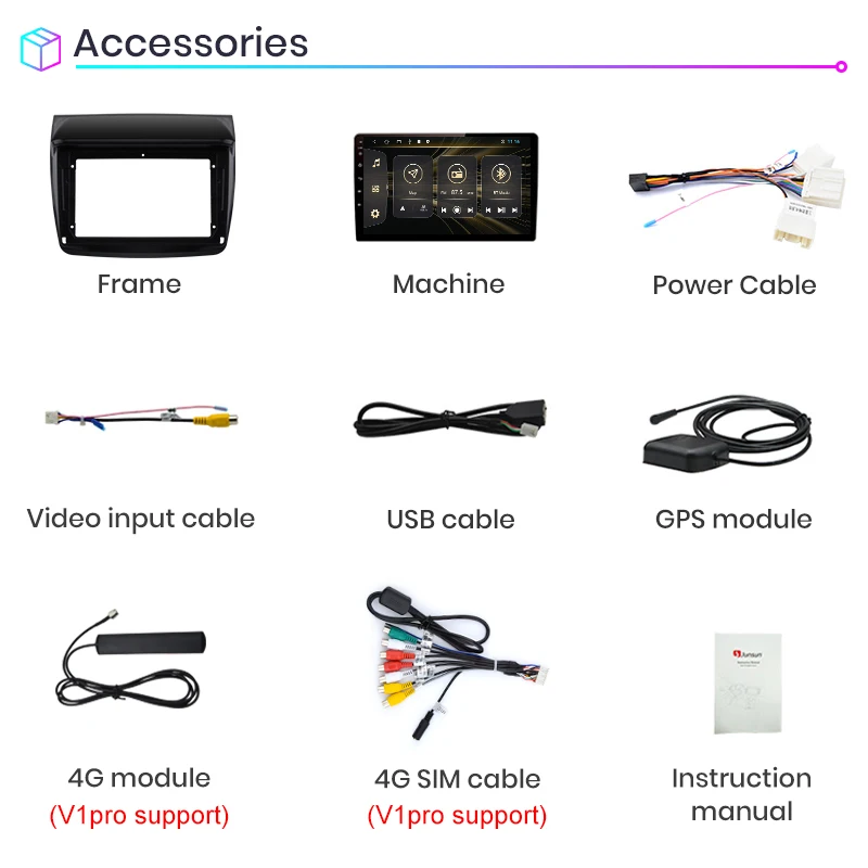 1. Штифт-штифт: Кабель питания Junsun radio' является штифтом для штифта, прост в установке;2. Встроенный Carplay/ Android Auto: Поддержка версии V1Pro, просто используйте кабель телефона, подключите его, стабильный и простой в использовании; (V1 поддерживает только Android Auto, но нужно покупать; V1C не поддерживает)3. Поддержка подголовника: только поддержка версии Junsun V1;