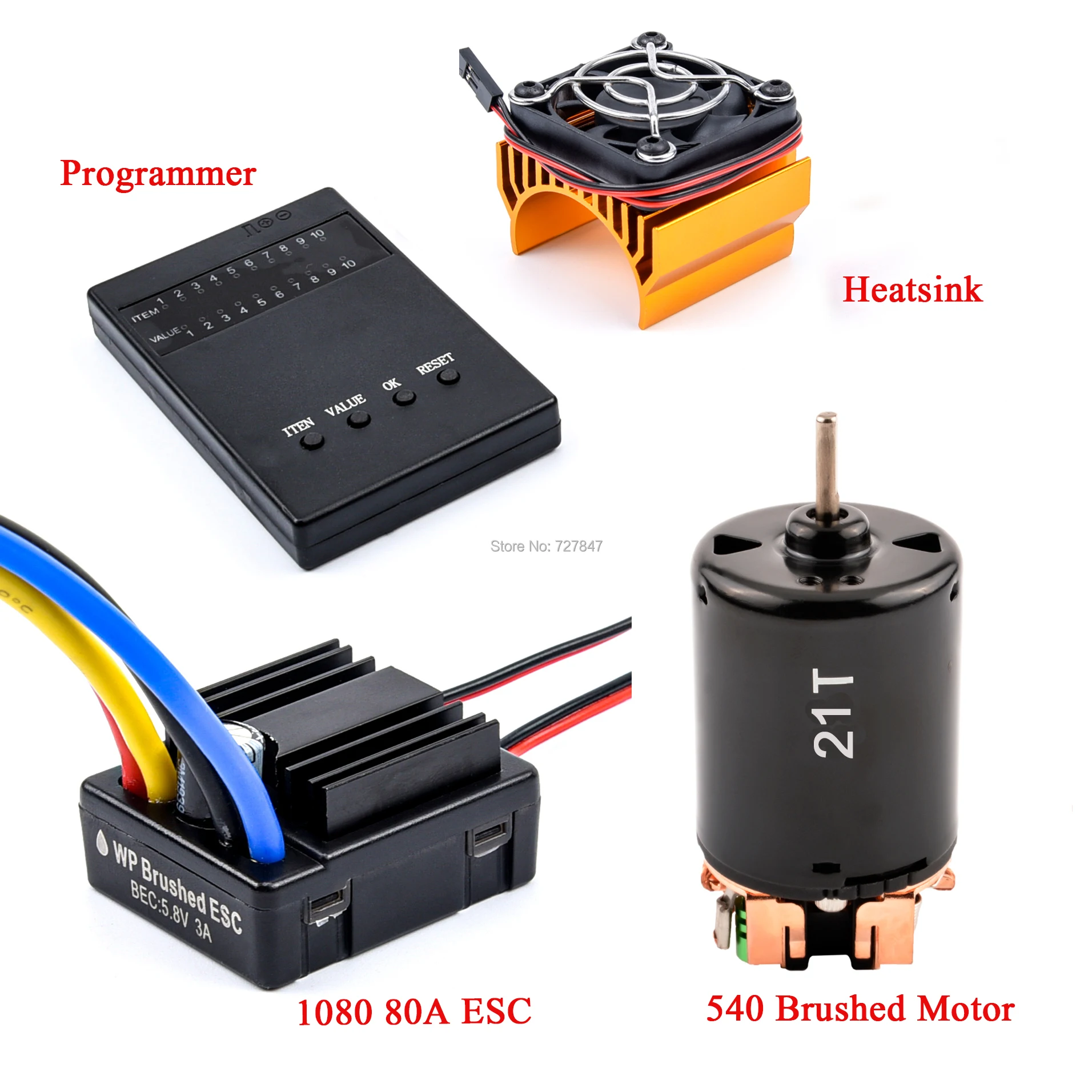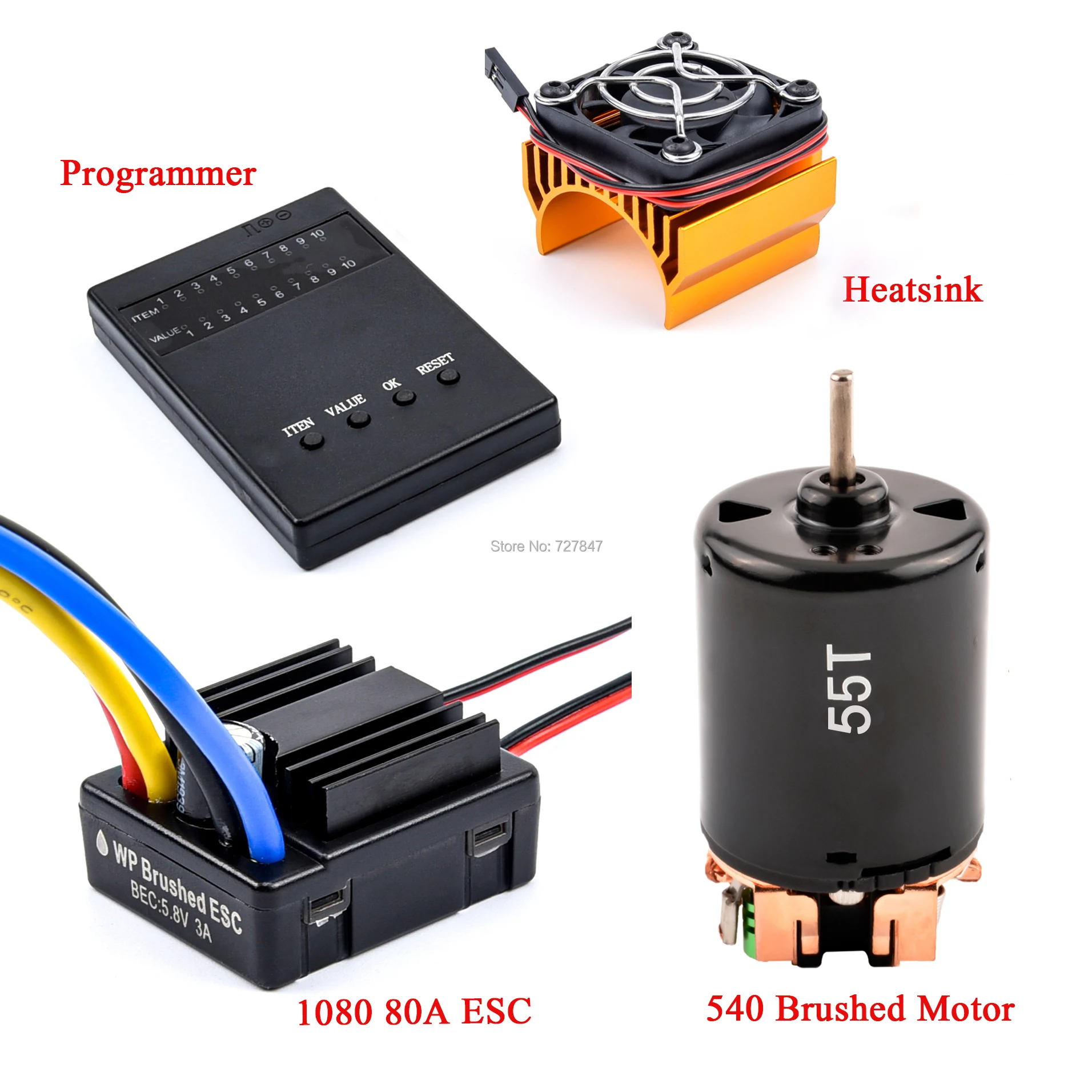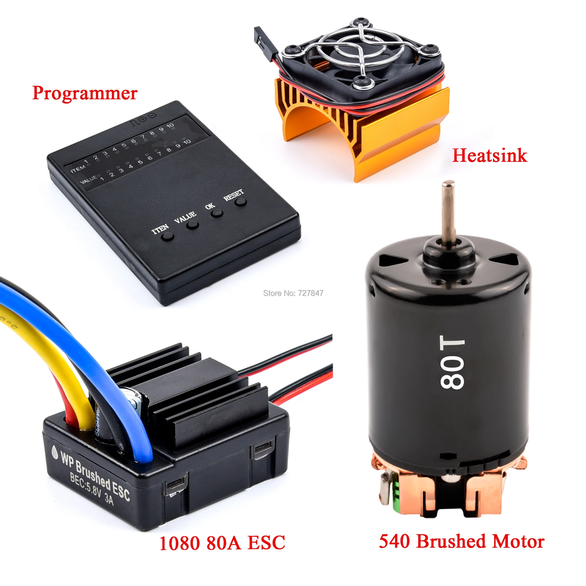 1080 80A щеточный регулятор скорости ESC водонепроницаемый ESC + 540 щеточный двигатель + охлаждающий вентилятор + программатор для 110 RC автозапчастей