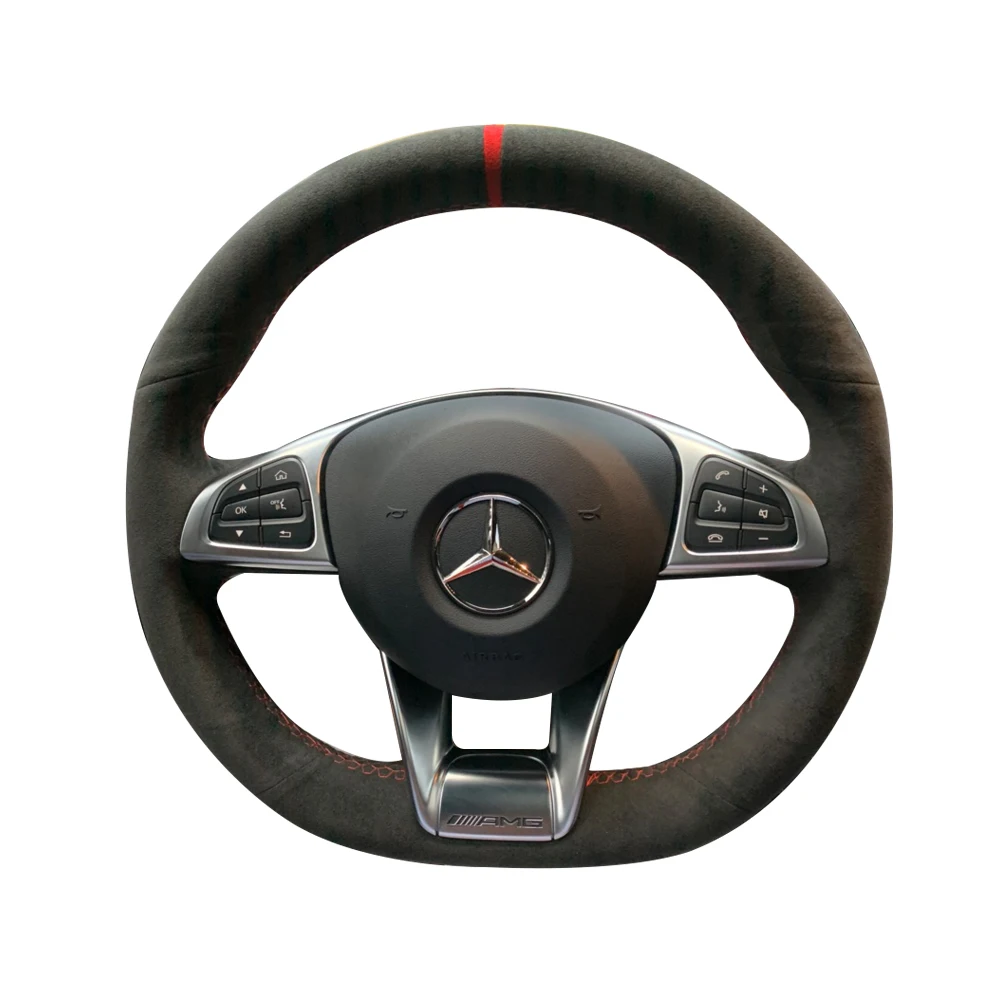 DIY все черные замшевые кожаные рулевые колеса красный стежок на обертывание крышка подходит для Mercedes Benz S-Class S500 2016 / A-Class AMG A45 2016-2018 / CLA-Class AMG CLA45 2015-2019 / C-Класс AMG C43 C63 2015-2018/e-класс AMG E43 E63 2016-2018/s-класс AMG S63 S63L S65 2015-2017 / GLA-класс AMG GLA45 2016-2019 / GLE-класс AMG GLE43 GLE63 GLE63S 2015-2018 / GLC-класс AMG GLC43 GLC63 GLC63S 2016-2018 / GLS-класс AMG GLS63 2016-2019 / AMG GT GTC GTS GTR GT3 2015-2019/CLS-Class AMG CLS63 2014-2017 / SL-CLass AMG SL63 SL65 2016-2018 / SLC-CLass AMG SLC43 2016-2019 / Maybach S-Class S650 2017
