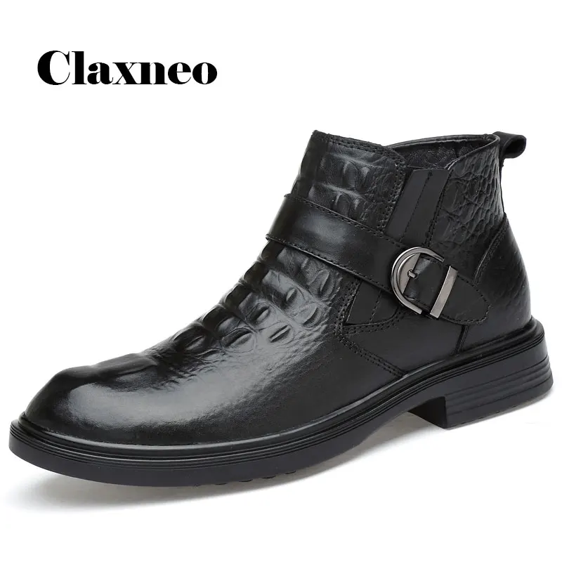 Мужские ботинки из натуральной кожи аллигатора 2020 Мужская Осенняя обувь крокодиловый дизайн мужские зимние ботинки плюшевые меховые теплые классические брендовые ботинки