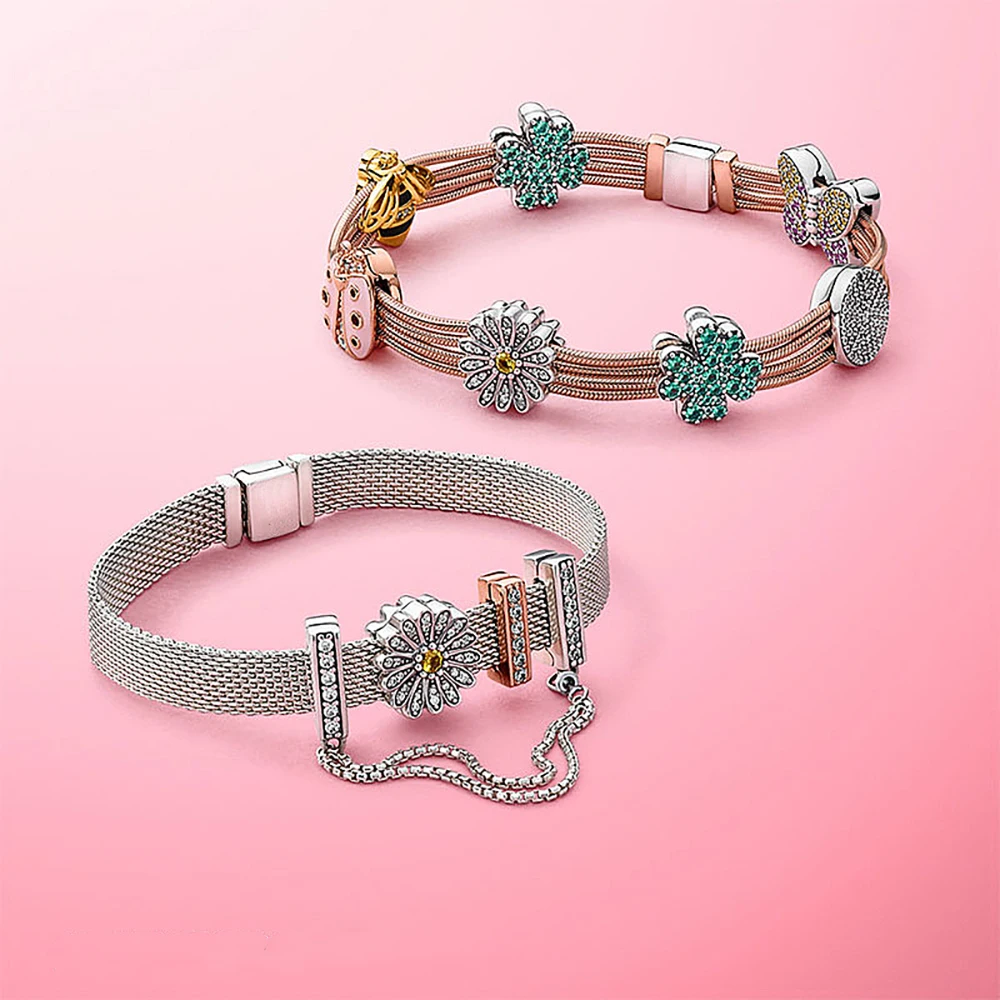 Volayer, искусственная Серебряная пчела, листья, дерево, полированная Маргаритка, цветок, Бабочка, зажимы, подходят для оригинального Pandora