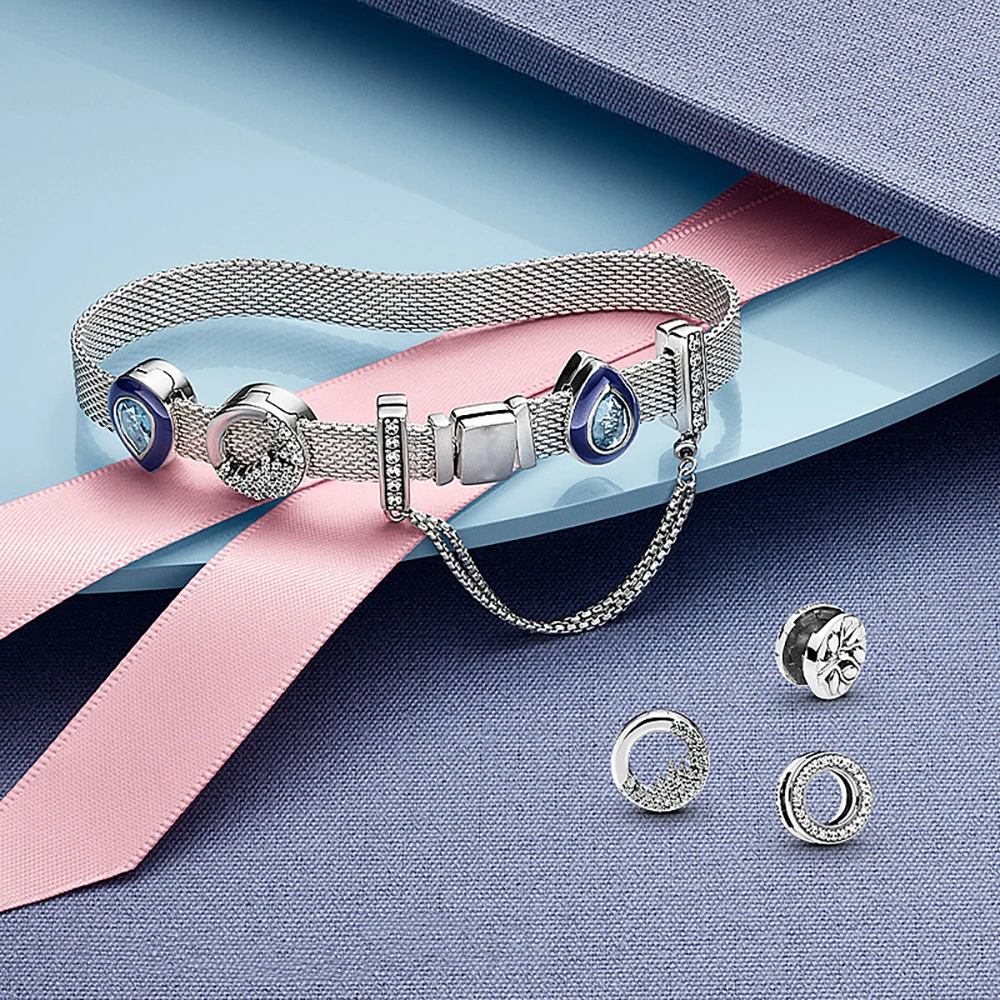 Модные серебряные бусины 925 пробы, ослепительные круглые скрепки, ...