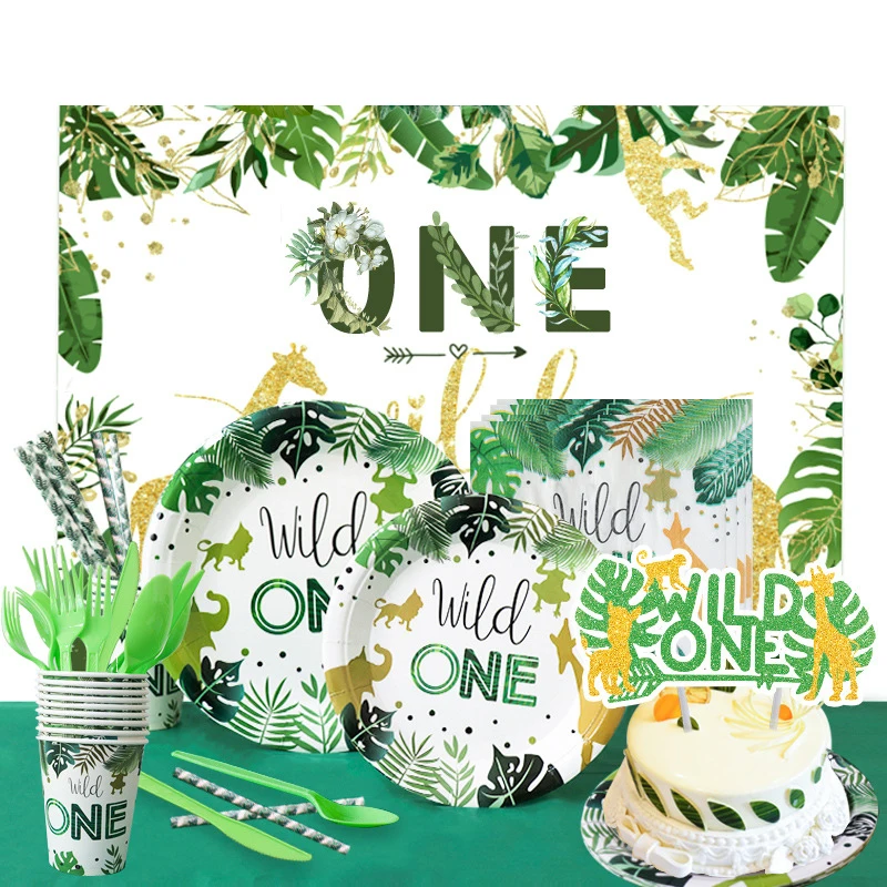 Одноразовая посуда на 1 год, тарелки для салфеток для мальчиков, дикая тарелка для салфеток, декор для дня рождения в лесу, джунглях, дикая детская тарелка на один год