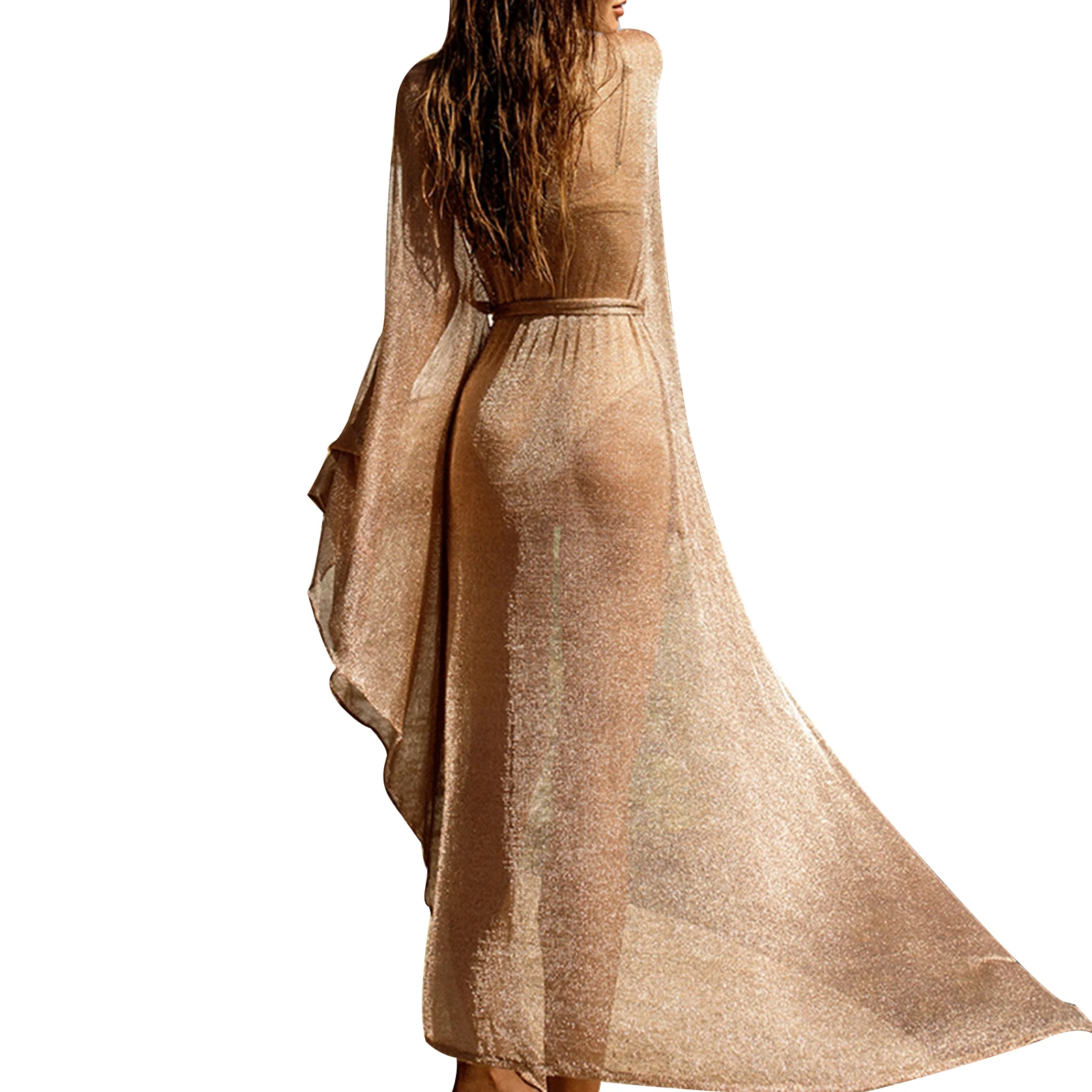 Женское солнцезащитное длинное платье с открытой передней талией, Золотое Платье блестящее бикини