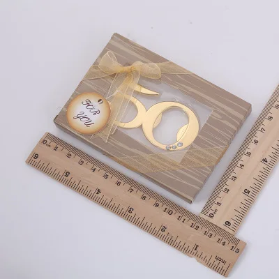Открывалка для бутылок, металлическая, золотая, 50, сувенир на день рождения