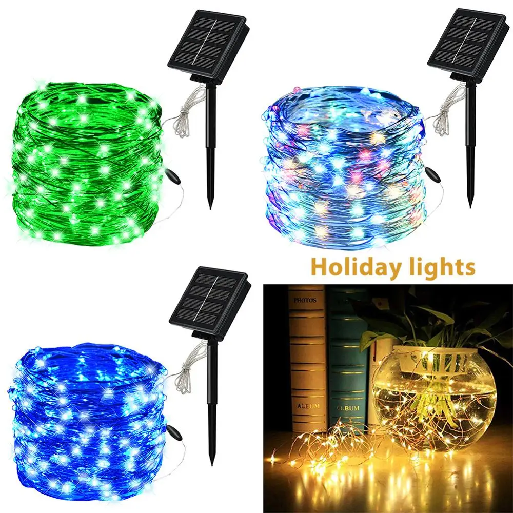 37. 7-футовая светодиодная гирлянда на солнечных батареях, 100 светодиодный, 8 режимов освещения, водонепроницаемое освещение для внутреннего и наружного применения