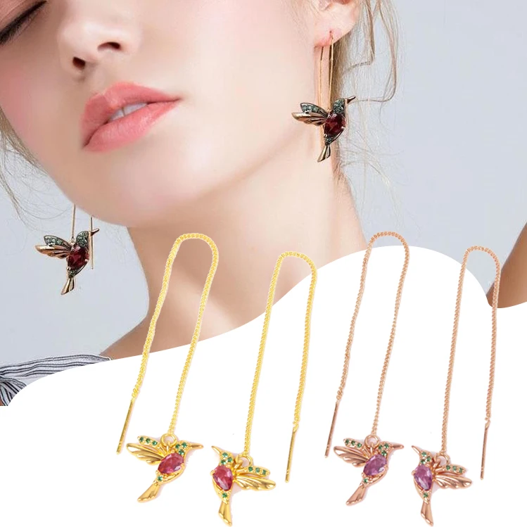 Висячие серьги в виде птиц, элегантные женские ювелирные изделия, милые животные, циркониевые кристаллы, висячие серьги для женщин, серьги с кисточками, длинные висячие серьги