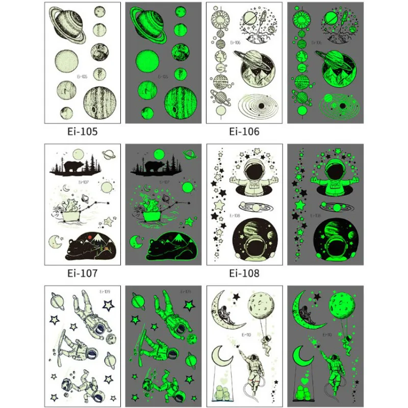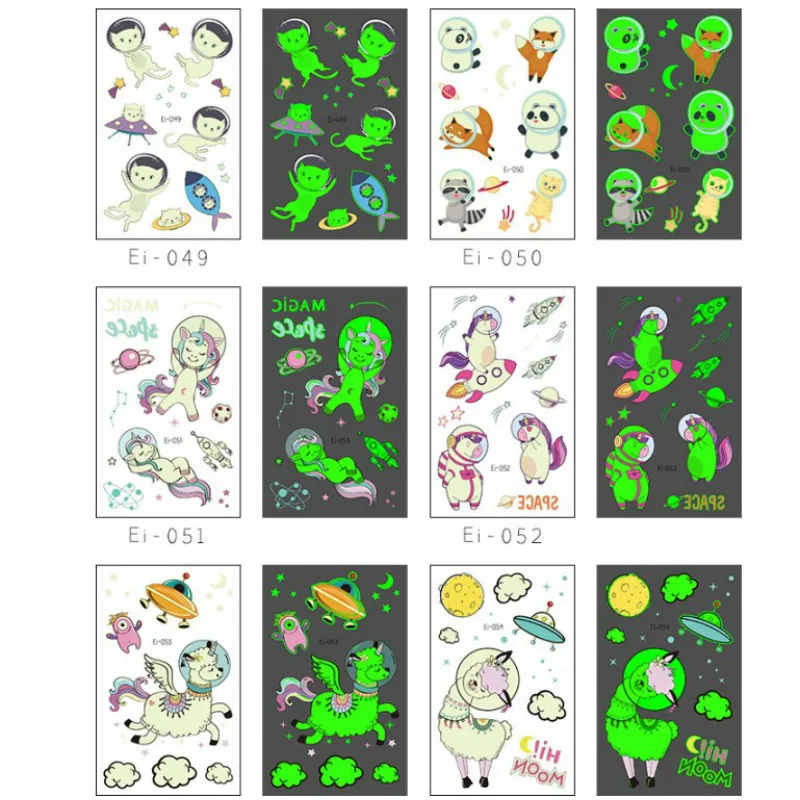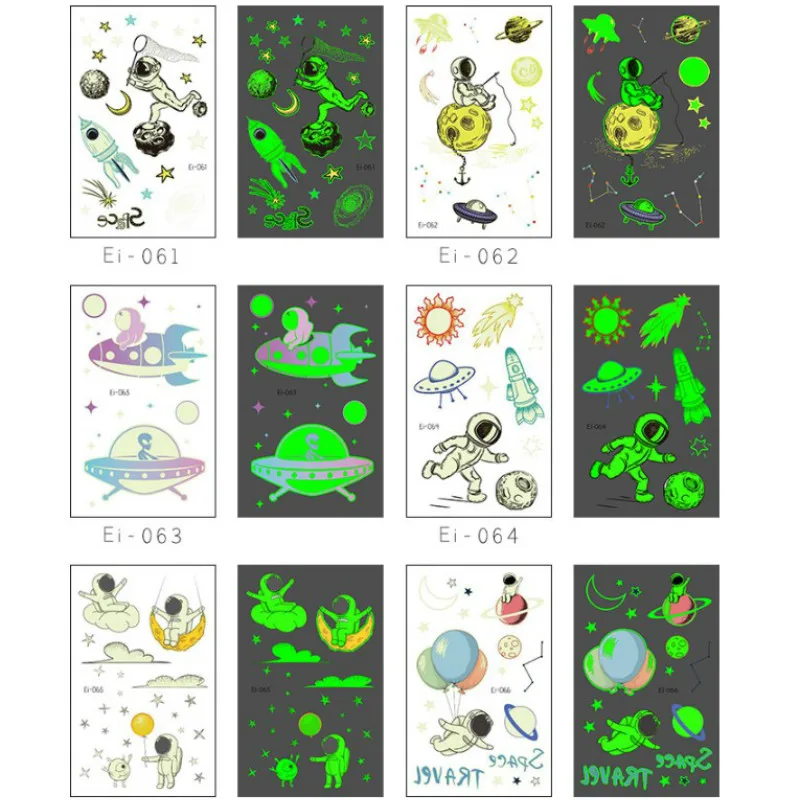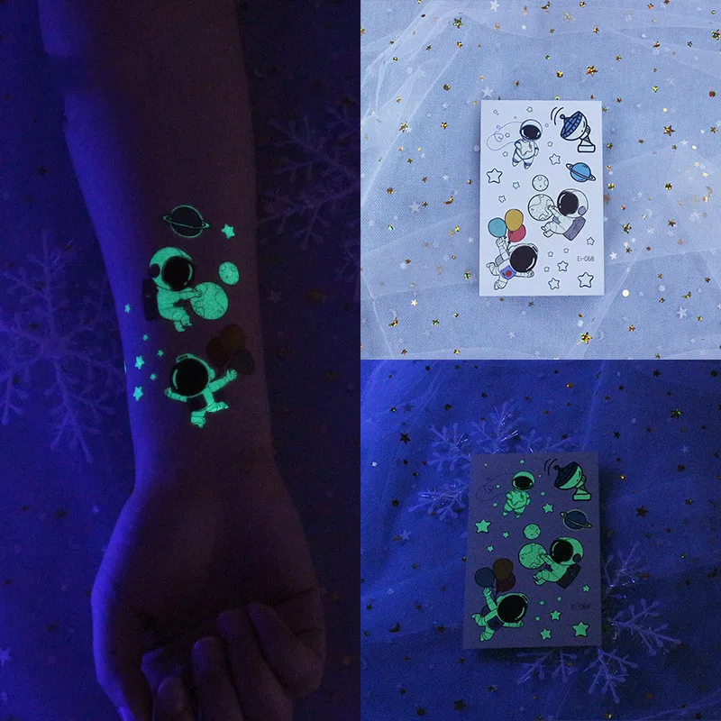 Светящиеся тату-наклейки для детей, боди-арт, Космический мультипликационный временный малыш, светящаяся паста на лице, рука, нога, поддельные татуировки, наклейка