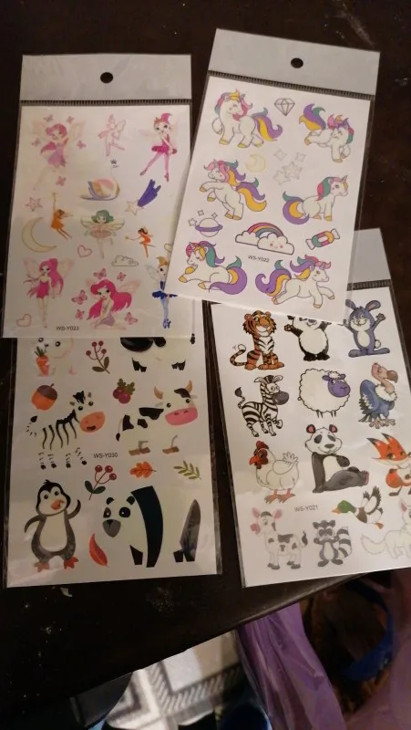Мне понравились наклейки, они нормального размера, чтобы надеть идеальную ручку. Это стоит немного сократить их, потому что они очень близки друг к другу. Моя дочь очень рада.