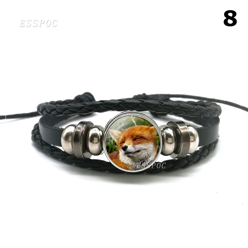 Милый браслет с красной лисой, стеклянный купол, черная кожаный панк-браслет, модные ювелирные украшения для мужчин и женщин, аксессуары, подарок для любителей животных