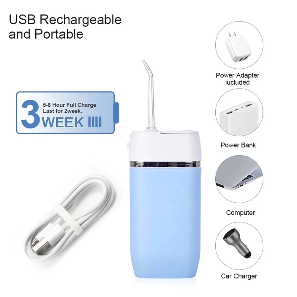 1 корпус флосера для воды, 2 насадки, 1 дорожная сумка, 1 USB-кабель, 1 руководство, 1 подарочная коробка.