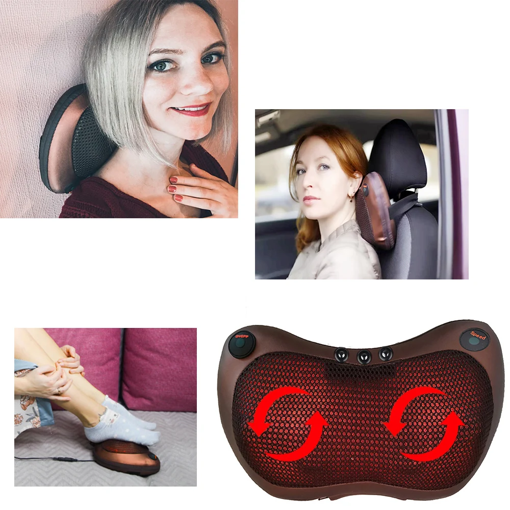 Инфракрасная массажная подушка с вибрацией, расслабляющая Массажная электрическая Подушка с прогревом спины и плеч, разминание, подушка терапевтическая, шиацу, массажер для шеи