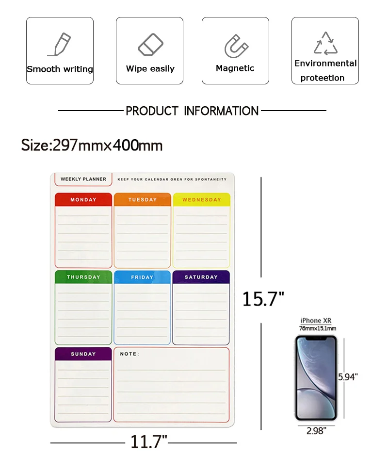 Magnetic monthly planner size297mm*400mm/11.7"*15.7"