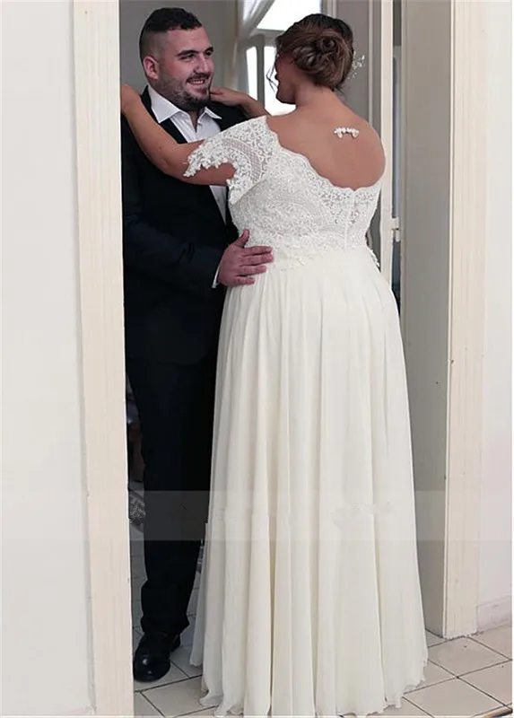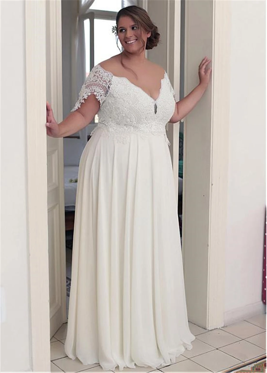 Элегантное размера плюс свадебное платье, кружевное шифоновое платье-трапеция с открытыми плечами и короткими рукавами, платье невесты с открытой спиной, 2020
