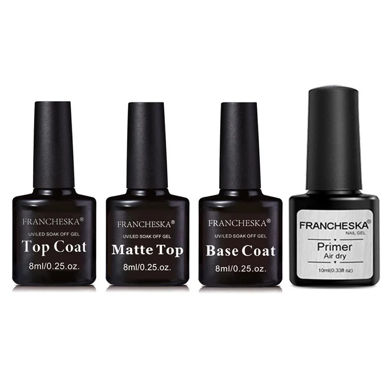 3. Уплотнительный слой: не стирается, долговечен для поддержания яркости поверхности ногтя, не желтеет, легко блестит.