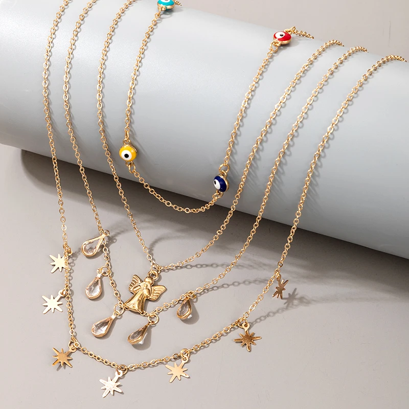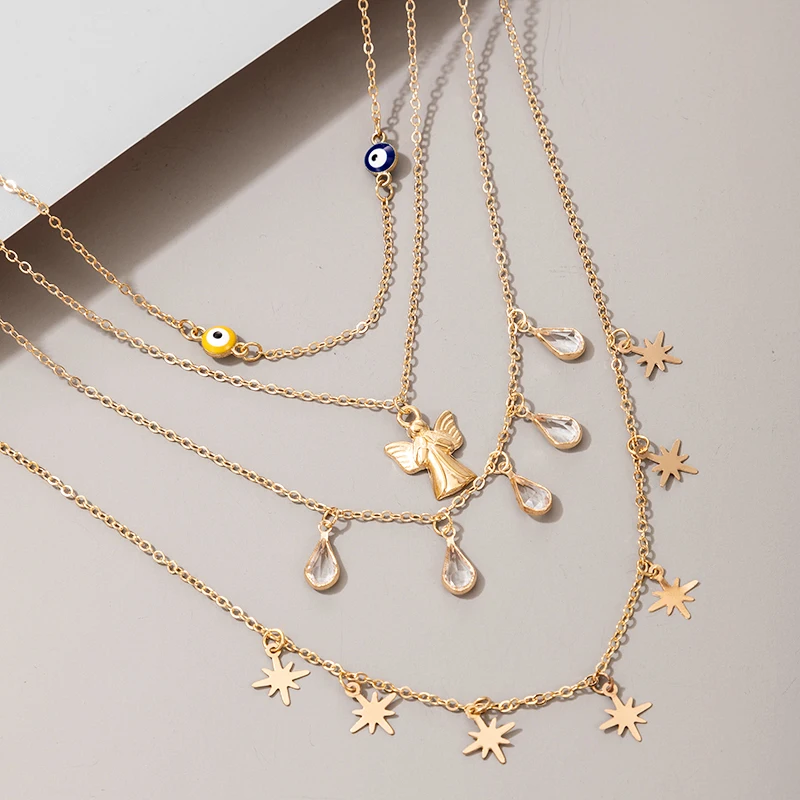 Женское ожерелье с подвеской в виде ангела Tocona, ожерелье с подвеской в виде капель воды и звездных глаз, богемное ювелирное изделие, подарок 9954