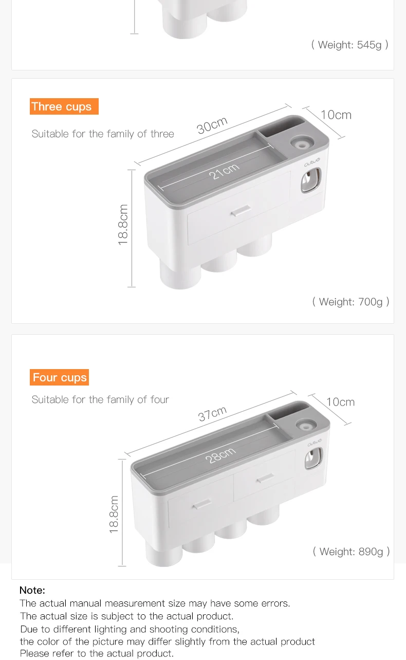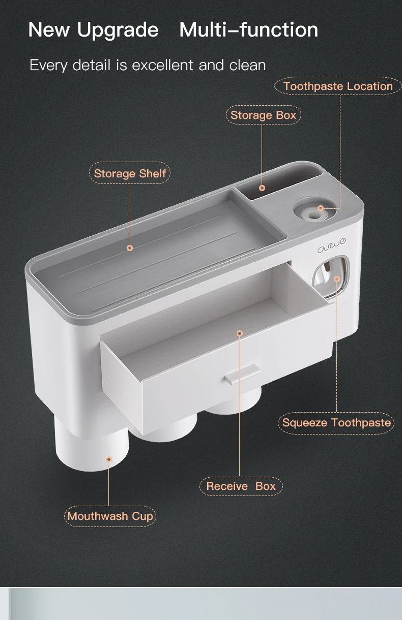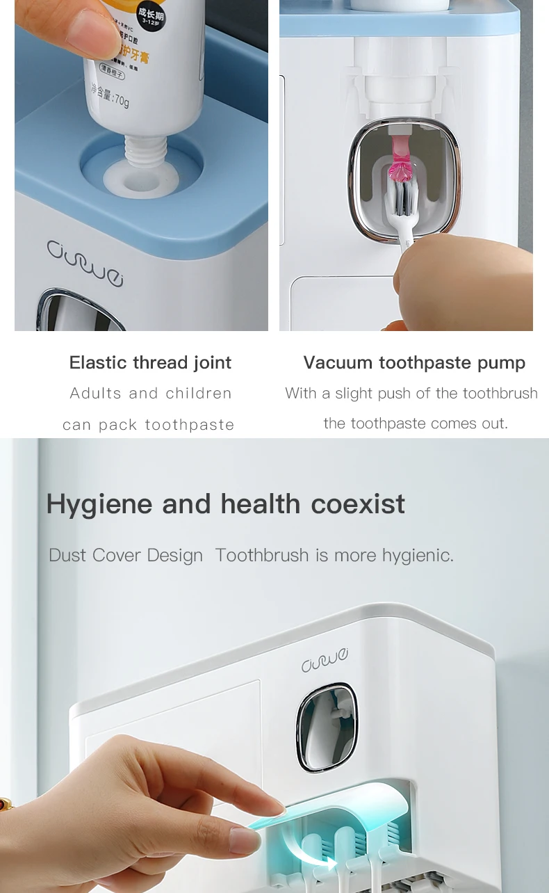 Особенности1. Магнитная присоска, подвешенная вверх дном без воды2. Установка без перфорации, отсутствие повреждений поверхности стены, твердая адгезия, сильная несущая способность3. Многофункциональная стойка для хранения, Верхняя полка + рифленый отсек + дизайн ящика, аккуратно хранится, более удобноПараметрыЦвет: синий/розовый/серыйХарактеристики: 2 чашки, 3 чашки, 4 чашкиРазмер: как показано на картинкеМатериал: АБС-пластикПримечание:При установке, пожалуйста, очистить стены сухой тряпкой, а затем вставьте non-маркировочная наклейка на гладкую стену, нажмите, чтобы выхлопной воздух внутри, затем установите Корпус держателя зубной щетки (эффект будет лучше после 24 часов)