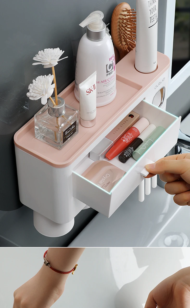Набор аксессуаров для ванной комнаты, держатель-автоматический диспенсер для зубной пасты, стойка для хранения косметики