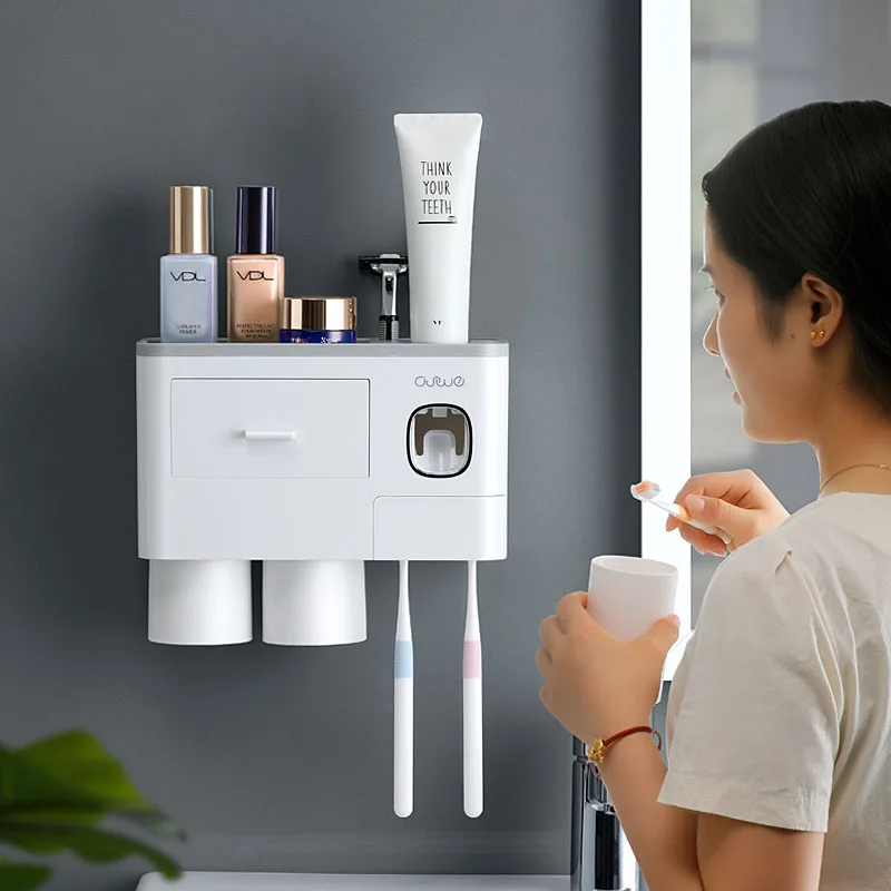 Аксессуары для ванной комнаты Органайзер держатель набор настенная подставка для зубных щеток автоматическая Зубная паста диспенсер для хранения косметики