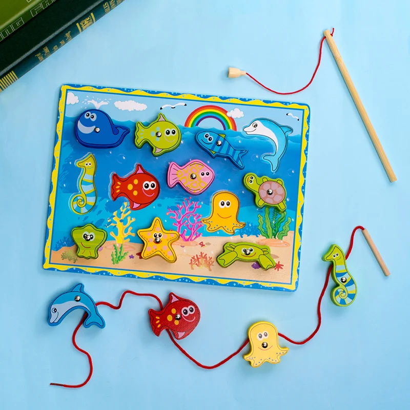 Детские деревянные Мультяшные Магнитные Головоломки для рыбалки, ин...