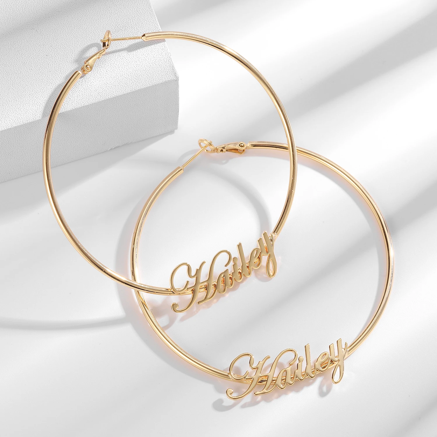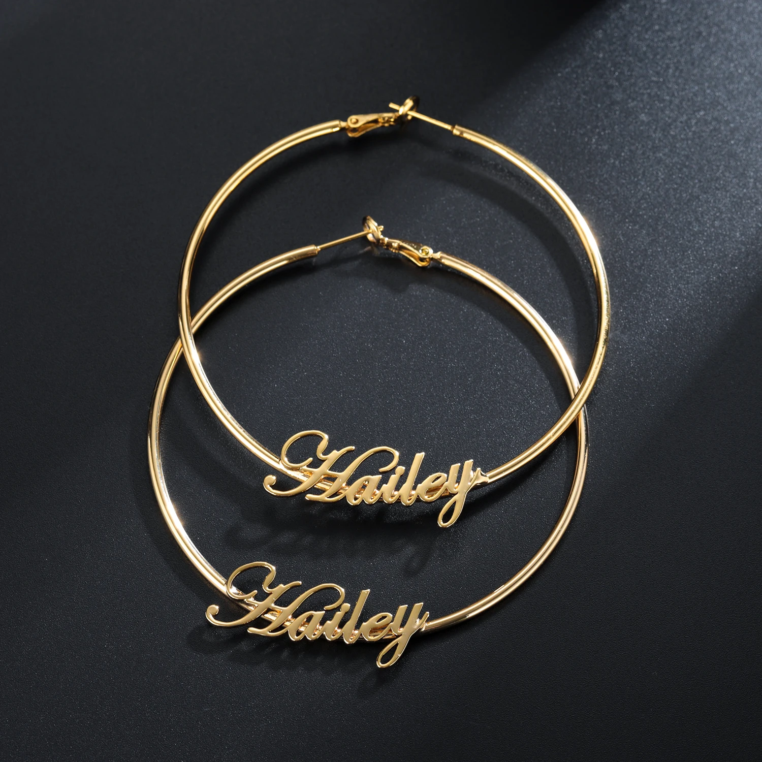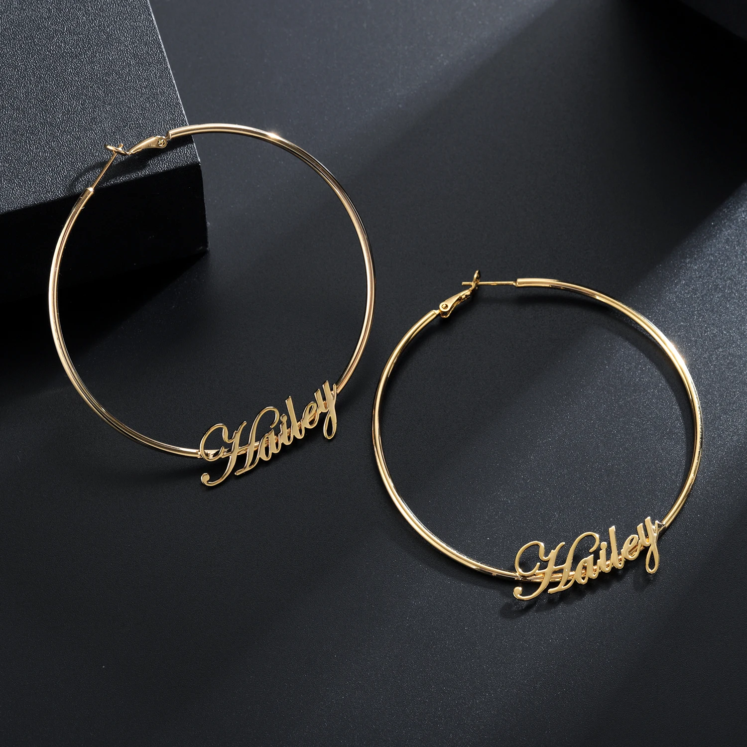Индивидуальные именные серьги-кольца, персонализированные золотые серьги из нержавеющей стали для женщин, именная табличка с буквами, массивные круглые ювелирные изделия, подарок