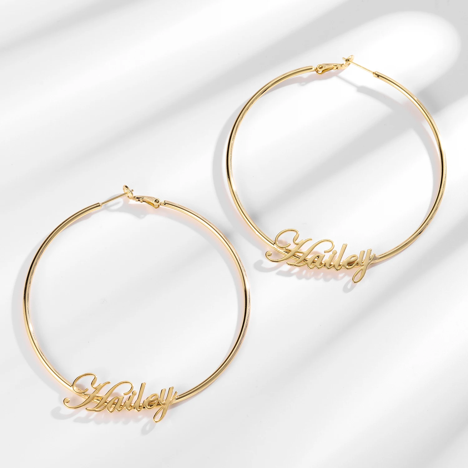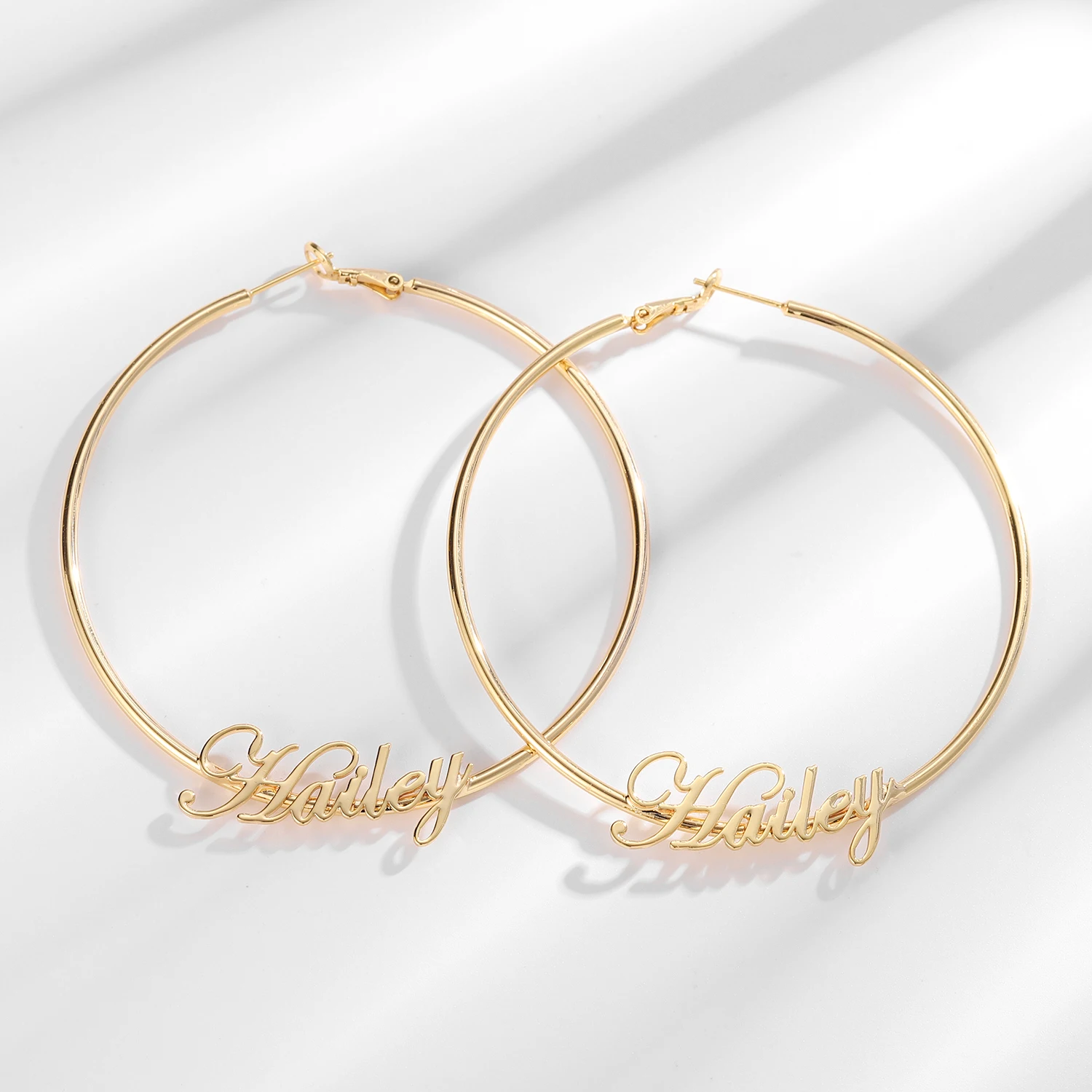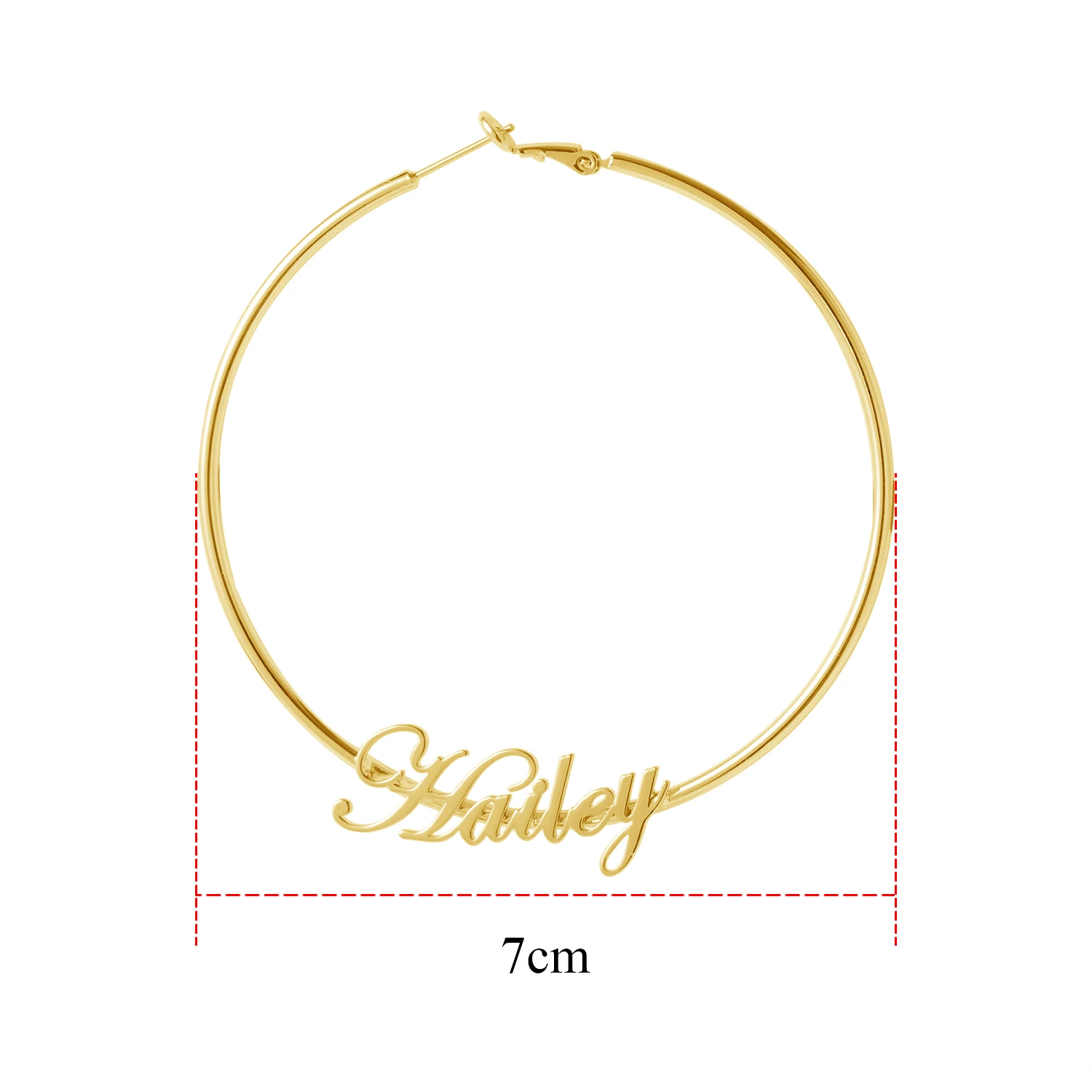 Индивидуальные именные серьги-кольца, персонализированные золотые серьги из нержавеющей стали для женщин, именная табличка с буквами, массивные круглые ювелирные изделия, подарок
