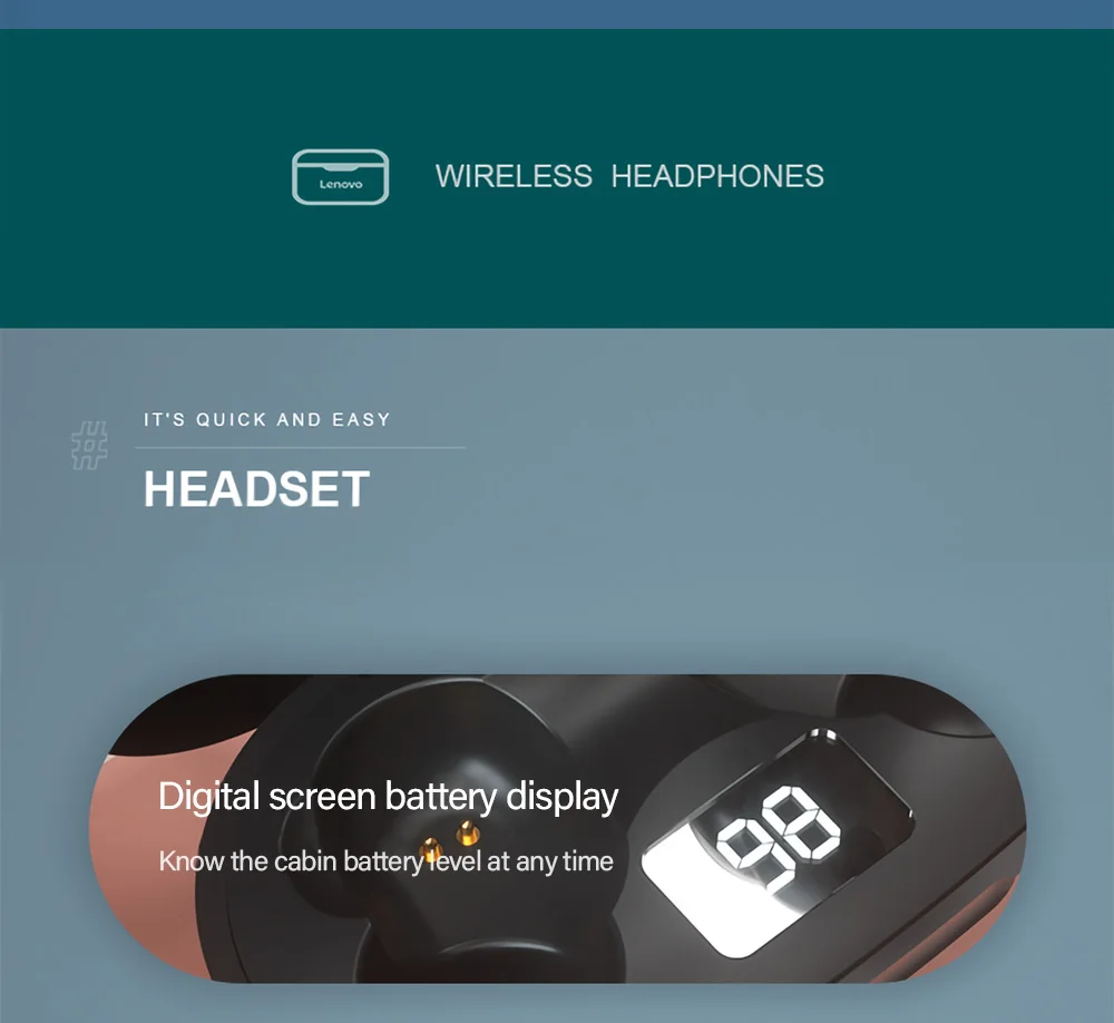 TWS-наушники Lenovo со светодиодной подсветкой и поддержкой Bluetooth