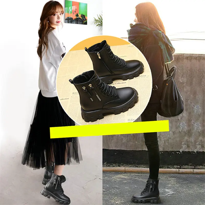 Новинка 2021, зимняя Универсальная Женская обувь в британском стиле на толстой подошве, увеличивающая рост, бархатные короткие сапоги