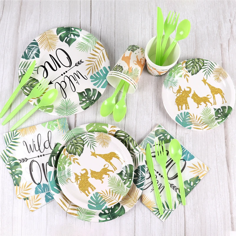 Набор одноразовой посуды Wild One, украшение для дня рождения в джунглях, товары для 1-го дня рождения, Детские принадлежности для детского праздника