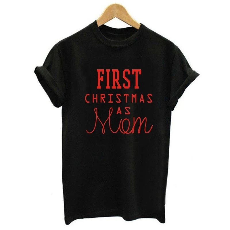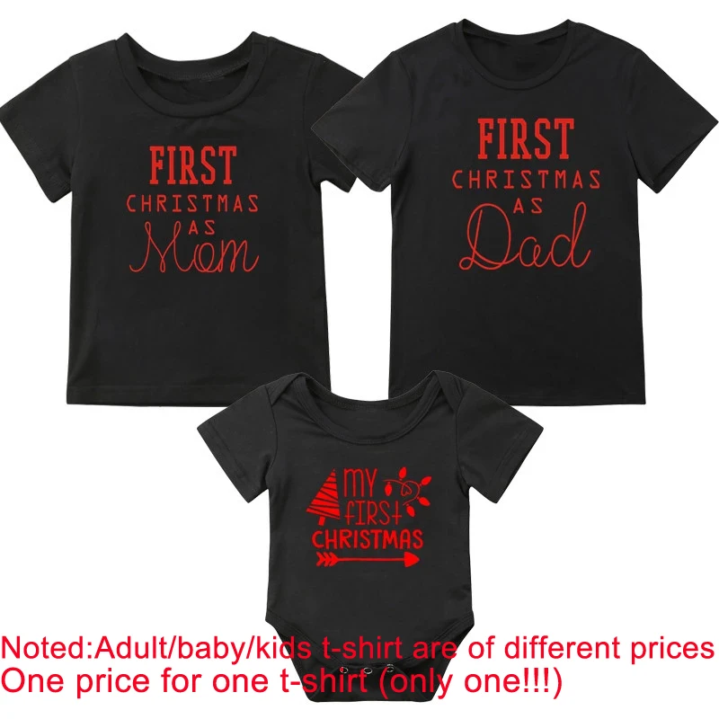 2021 г., футболка с надписью First Christmas As Mom Dad забавная одинаковая футболка для всей семьи черная футболка с короткими рукавами для мамы и папы забавная одежда