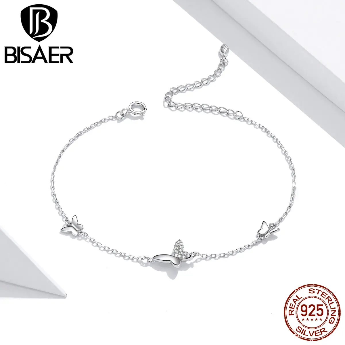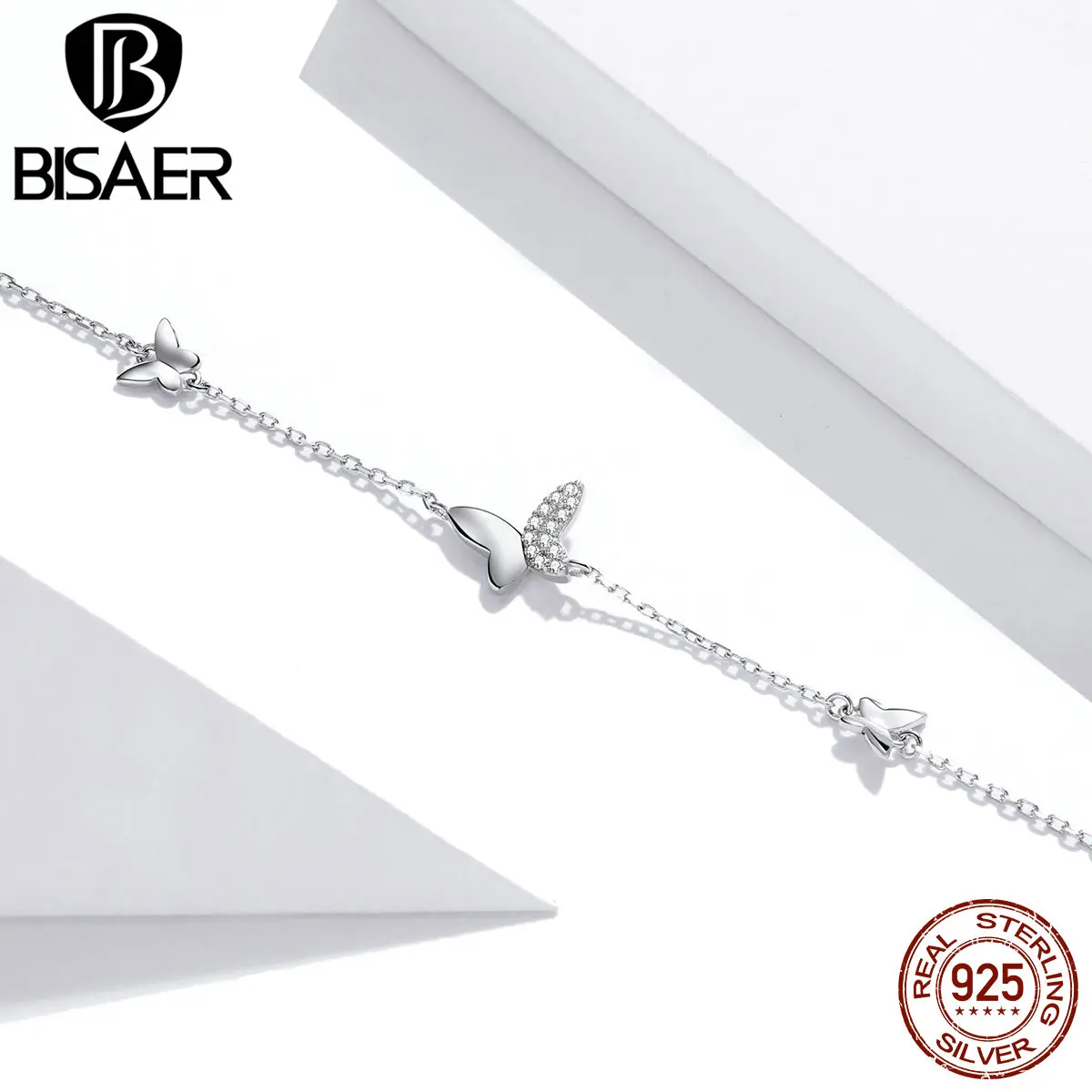 Женский браслет из серебра 925 пробы, с бабочками
