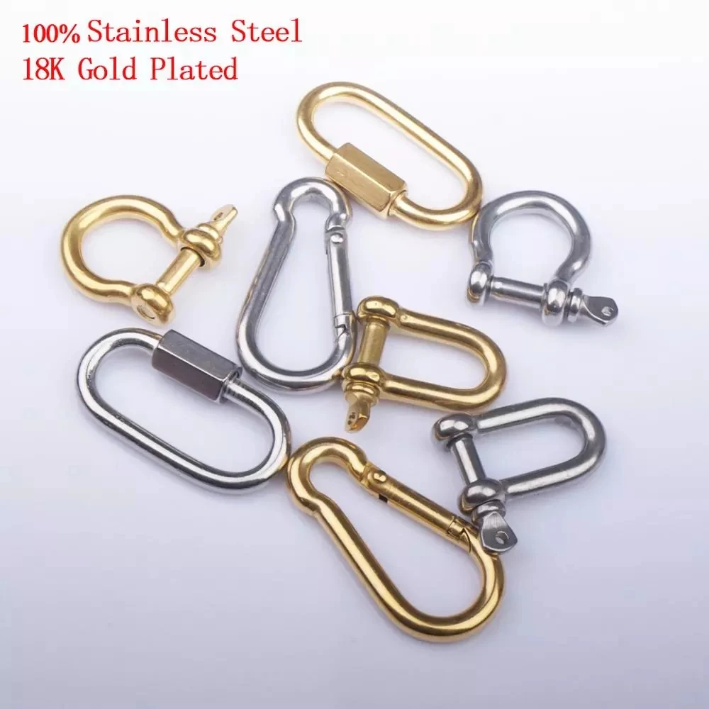 100% карабин из нержавеющей стали амулет с крюком застежка для изготовления ювелирных изделий металлические карабины золотого/серебряного цвета спиральные застежки и крючки