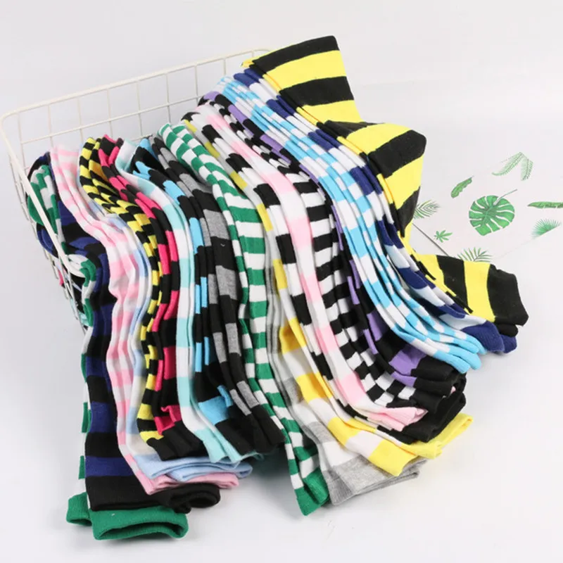 Модные женские хлопковые носки, облегающие гольфы в полоску выше колена