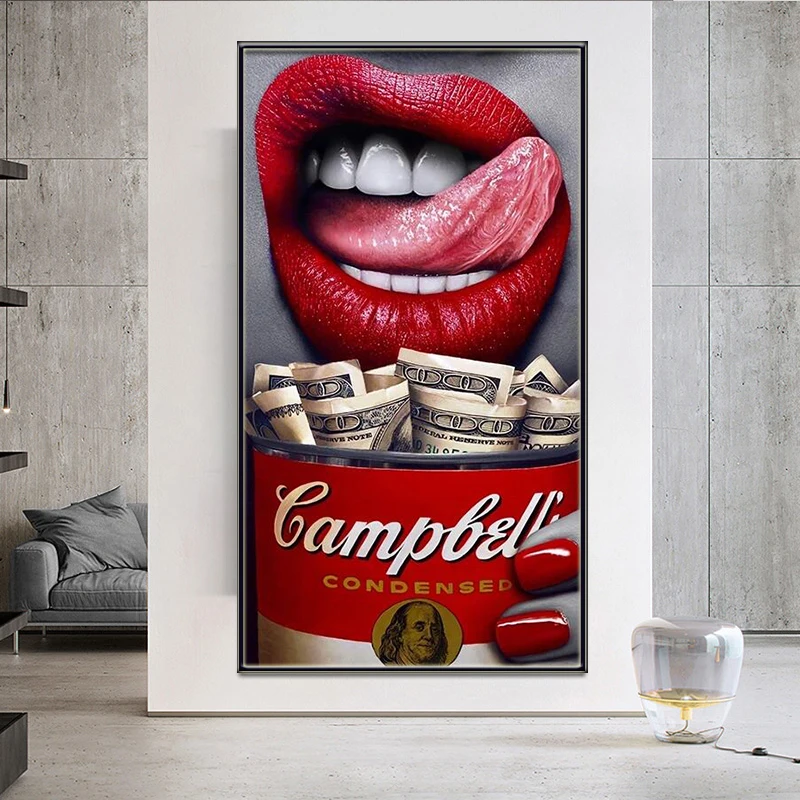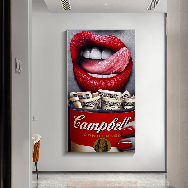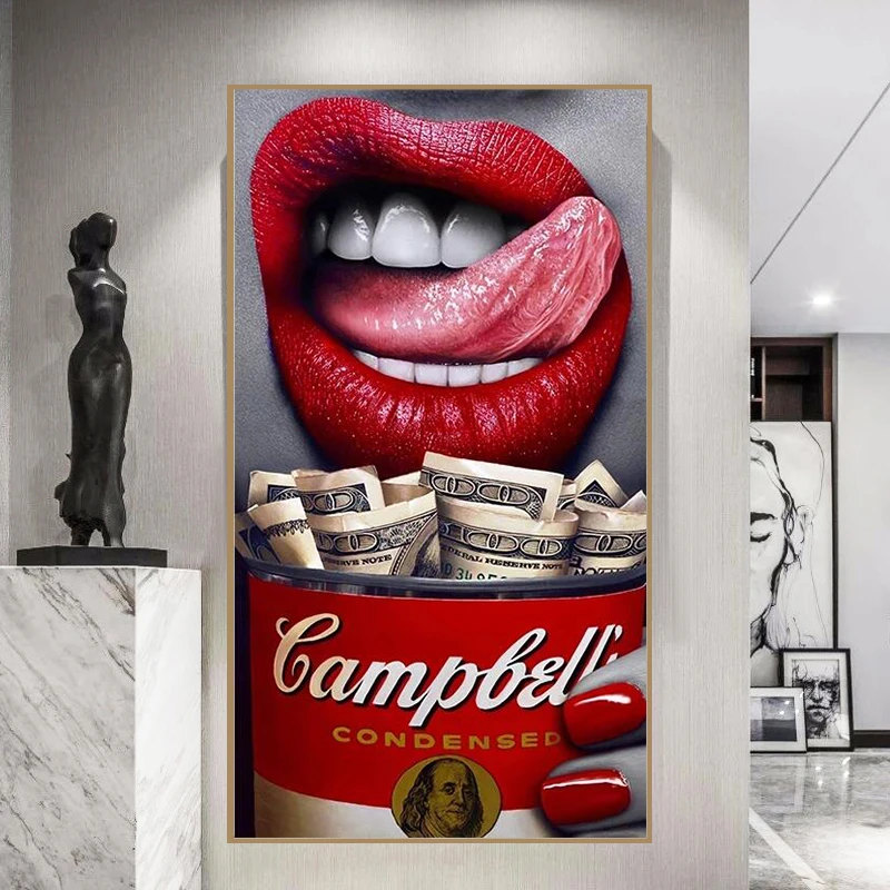 Украшение для гостиной, красные губы, женщина, есть деньги, печать, Настенная картина маслом, холст, картина, гостиная, бар, офис, украшение для дома