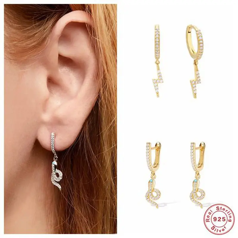 Aide 925 Стерлинговое Серебро Циркон в форме сердца CZ обруч серьги для женщин с геометрическим рисунком молний ювелирные изделия из старинных серег подарок для пар, Винные Бокалы Для Pendientes