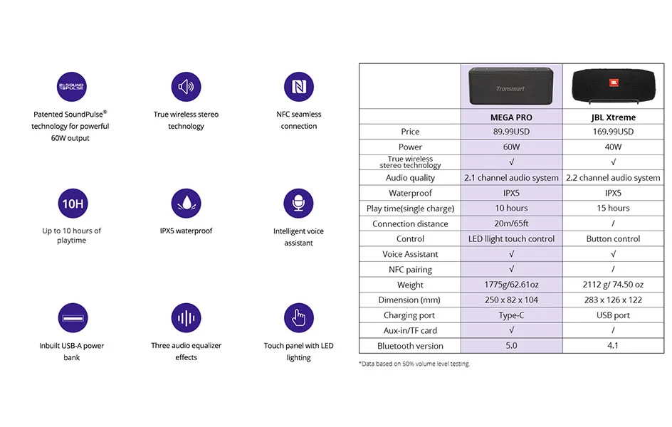 Tronsmart Mega Pro Bluetooth динамик 60 Вт портативный динамик Улучшенная басовая колонка с NFC, IPX5 Водонепроницаемый, голосовой помощник