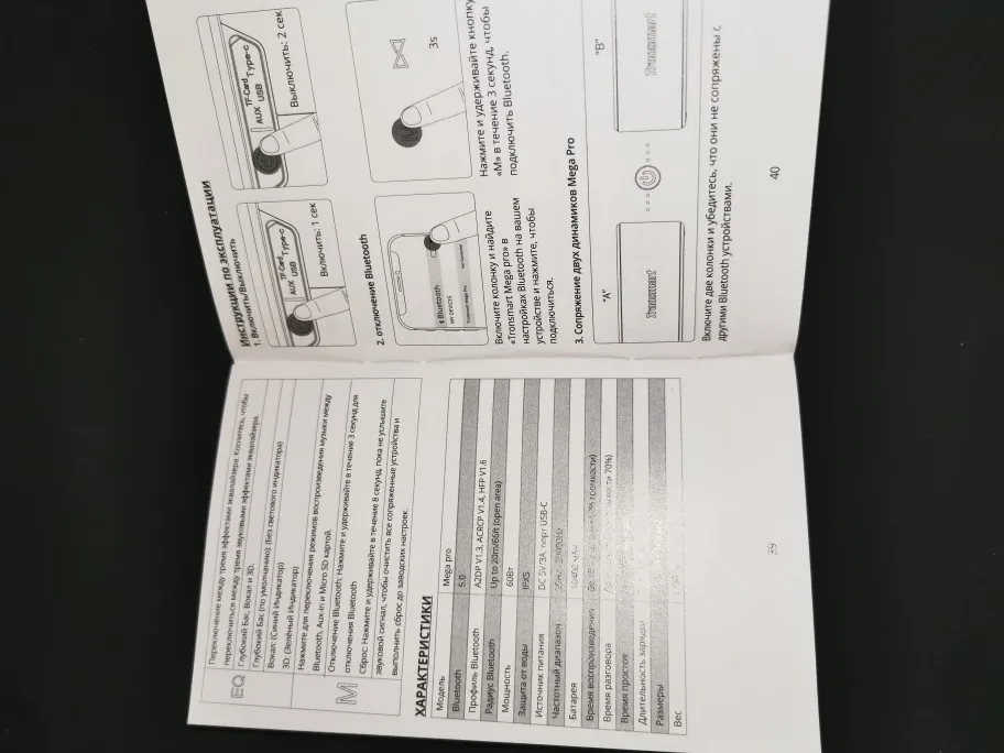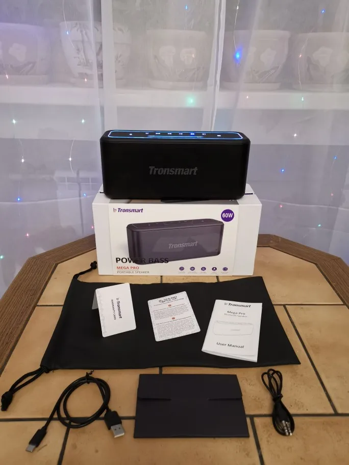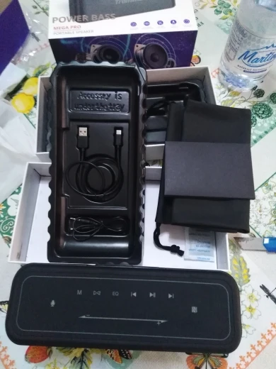 Я очень доволен этим... Получил его менее 1 недели с тех пор, как я заказал! Динамик удивил меня! Выход 60 Вт с громоздкими басами, басами, которые вы можете в буквальном порядке почувствовать, и звуковым выходом roo. Я случайно ударился по чашке с водой, даже если поверхность шкафа получилась водой, динамик все еще можно было играть нормально, а также аккумулятор, работает со мной 10 часов при нормальном объеме, функции NFC прекрасно работают. Комплект динамиков с аудиокабелем, зарядным кабелем Type-C, гарантийной картой, руководством пользователя и сумкой для хранения! Колонка Mega Pro отличная, я рекомендую!