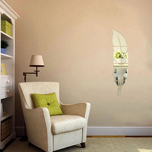Акриловое зеркало сделай сам, серебряные настенные стикеры в современном стиле, зеркальное перо