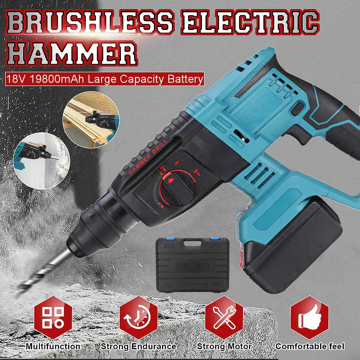Бесщеточный вращающийся молоток, электрическая дрель, молоток 18 в, 4 функции, молотковая машина, сверлильный бетонный инструмент с батареей Makita