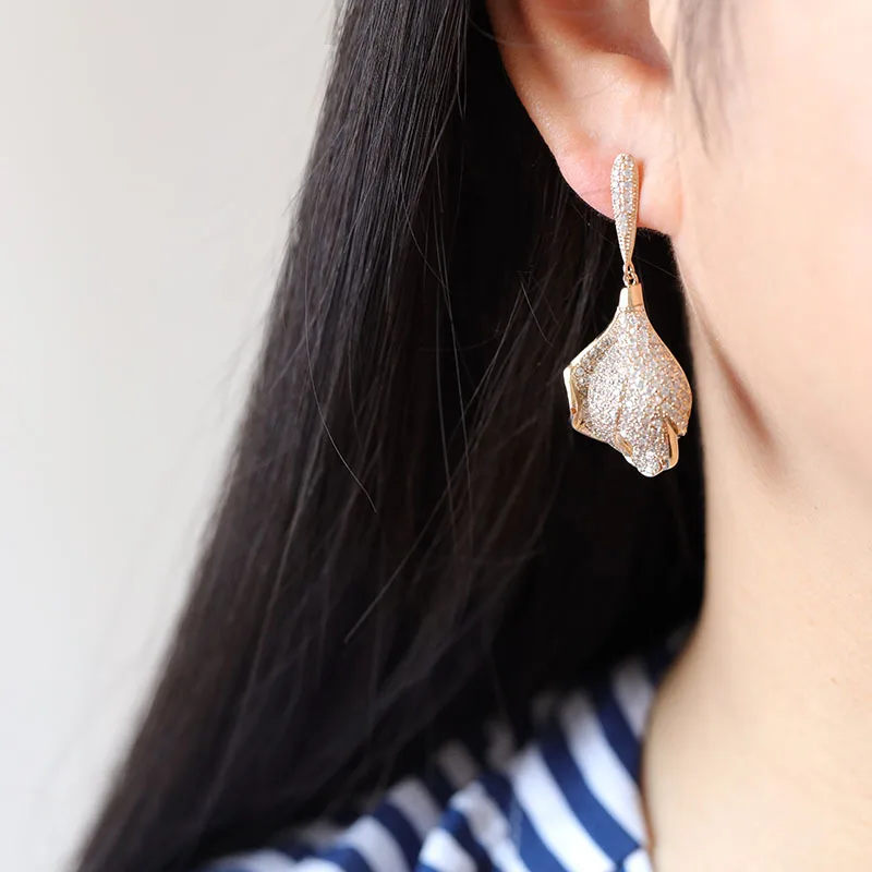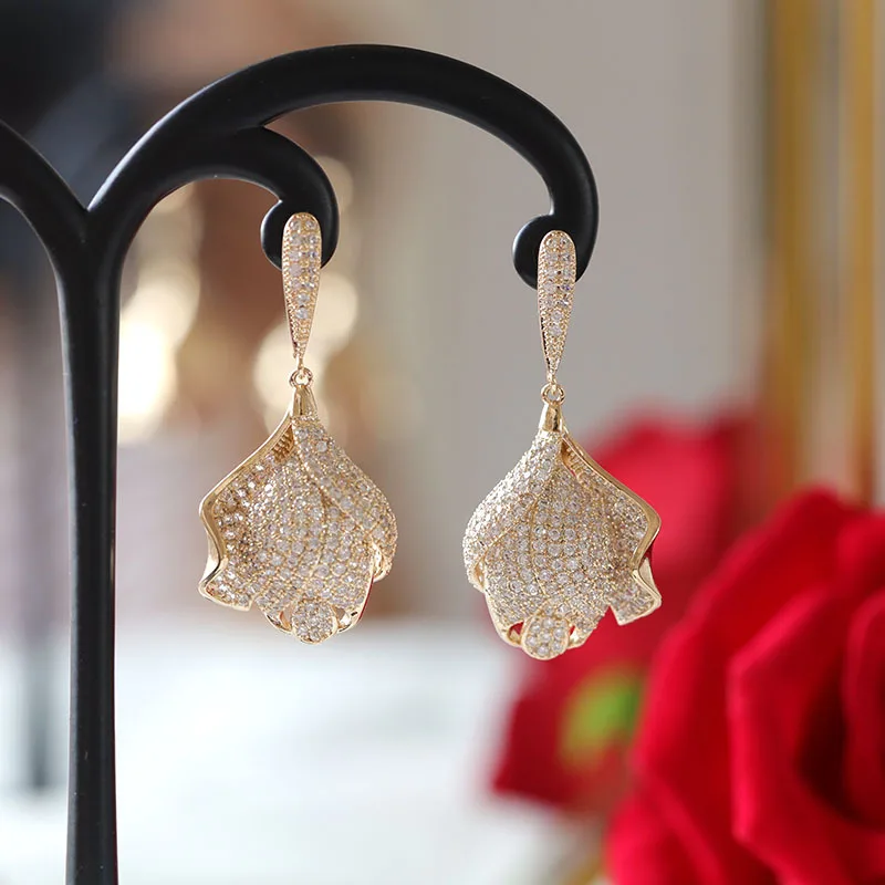 Модные красивые элегантные серьги в виде цветка, высококачественные серьги-подвески в виде цветка с блестящим кубическим цирконием для женщин, подарок на день рождения